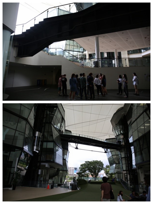 Lasalle艺术公司,由RSP Architects Plarlners&Enaineers(Pte)Ltd主持设计,其校园设计被标榜为新加坡这一花园城市的地标建筑。经刘教授介绍,该公司强调跨越理论与实践的各学科间共融的教学理念,因此用6个建筑组成的校园建筑群实现跨学科间的相互交流,又让各学科彼此独立,各具特色,打造出一种无边界学习氛围来进一步提升员工们的学习方法,置身这样的校园,让同学们感受到开放式,互通式教学理念下的校园设计特色。