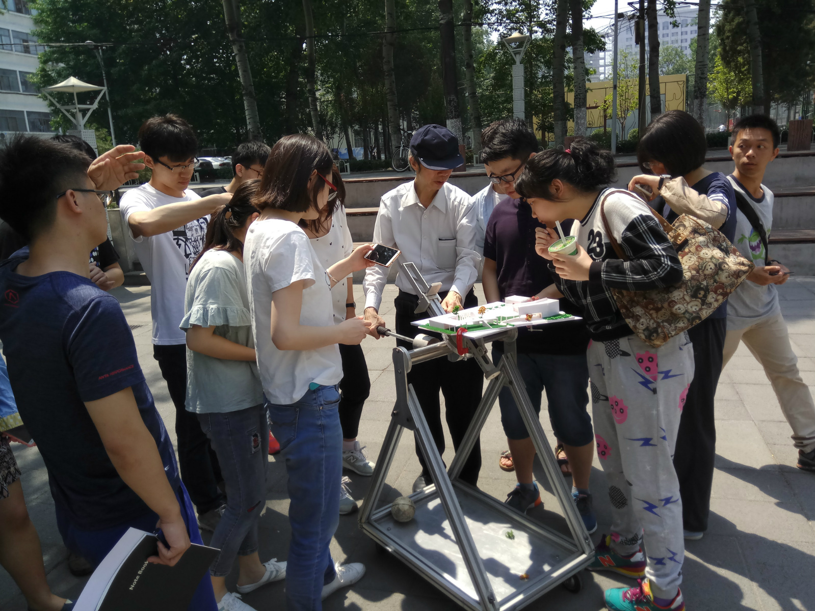 我公司建筑技术部邹越、刘博、郝石盟参加了联合教学活动。在来访教学期间,张国斌老师以港大建筑学教学的规范教学方法,分别进行了“Solar design-principles”、“Site survey on solar design”两次课堂教学,从建筑设计中的节能思考出发,提出建筑节能在阻止地球变暖的工作中的重要地位,分析各种建筑节能的利弊,引导出建筑及环境设计中充分尊重其与太阳的对应关系的重要原则。实践教学环节中,张老师用个人发明专利——日照模拟系统(Heliodon)设备、和简易拼装起来日照模拟观测仪,带领同学们通过太阳方位图,利用棒影阴影测量法,准确的找出太阳与周围环境形成的全年阴影关系,指导员工绘制任何位置的太阳遮挡阴影图,以之作为节能建筑设计中重要的参考依据。以14级建筑学、工业设计的同学在指导下,回顾了棒影图的原理,熟悉日晷仪器的使用,拿出自己的设计模型进行仔细的阴影推敲,在很短时间内基本掌握了快速。