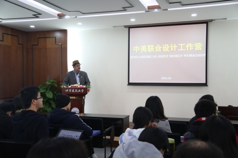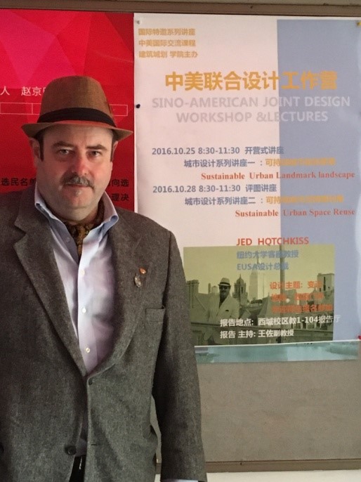 2016年10月18日至-30日,​mk体育邀请美国纽约大学客座教授Jed.Hotchkiss来公司进行学术交流。在历时两周的中美联合设计工作营期间,公司王佐副教授与Jed.Hotchkiss教授合作指导来自建筑学专业、城市规划专业和风景园林专业的12级本科生和部分研究生,赵可昕老师、李珊珊老师和郝石盟老师参加了本次工作营。