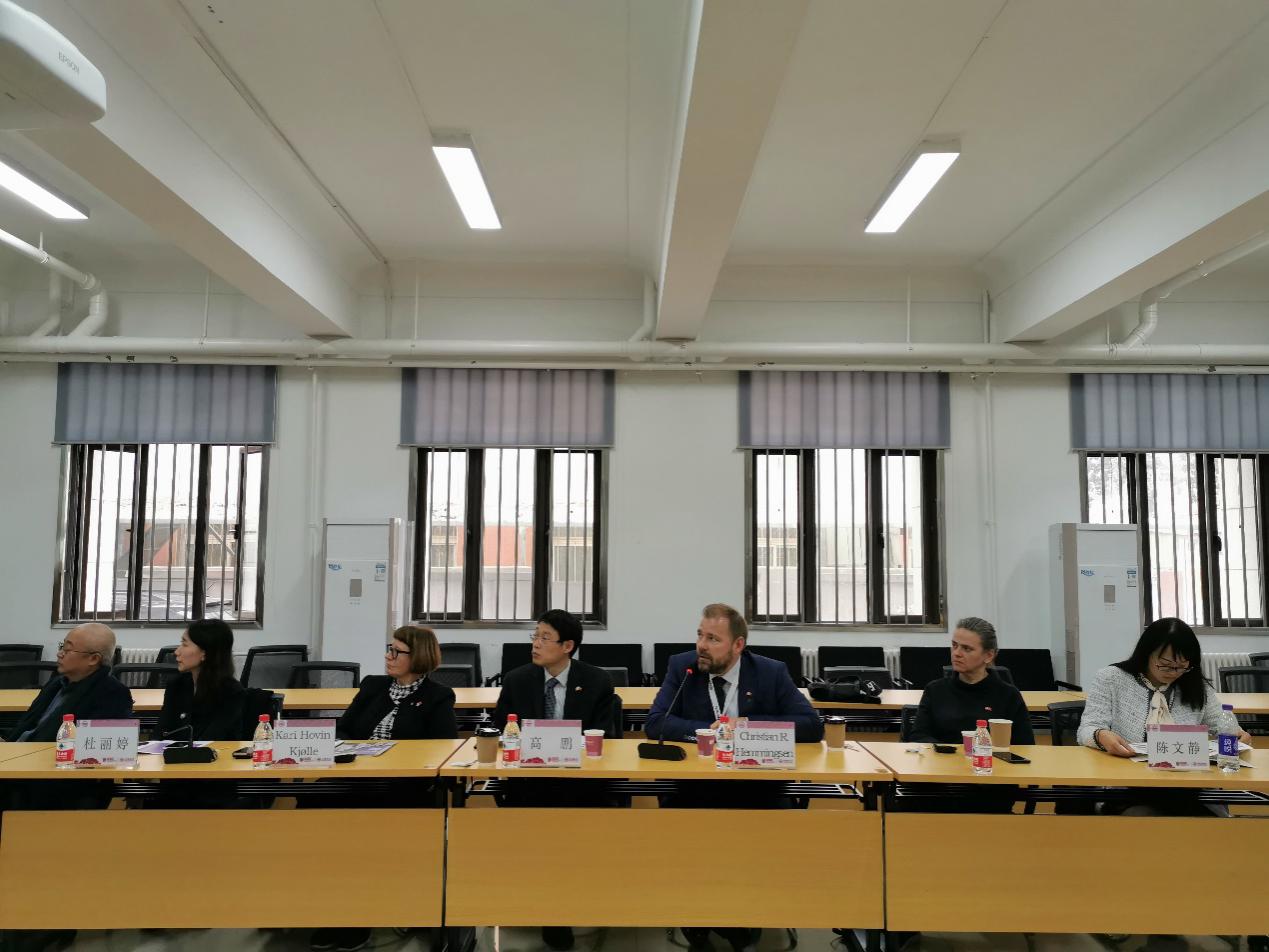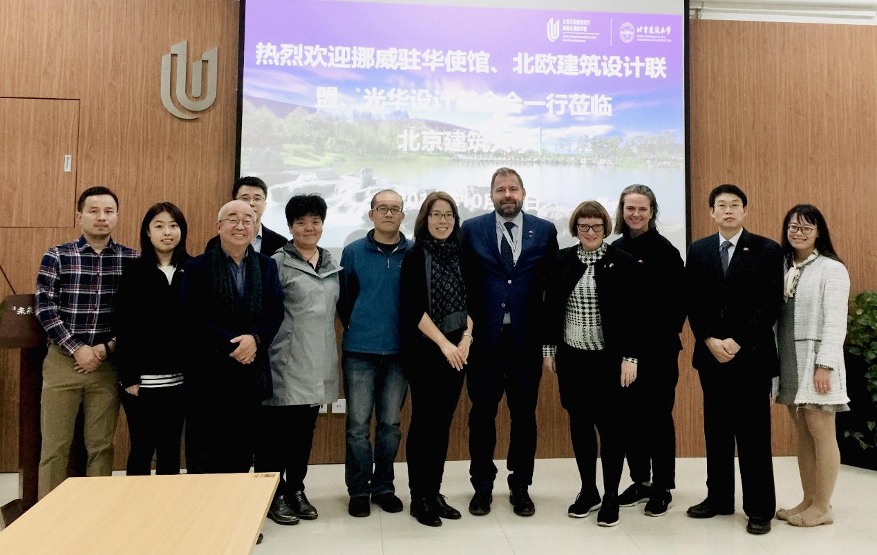在科技服务业专班重大专项和中挪绿色创新中心筹备建立的背景下,2019年10月19日下午,挪威驻华使馆高级商务官员高鹏博士,北欧建筑设计联盟执行主席、建筑设计师Christian R. Hemmingsen先生,挪威安博公司经理/设计师Kari Hovin Kj?lle女士,景观设计师陈文静女士,挪威法贝尔建筑设计事务所董事长、建筑设计师Margrethe Maisey女士,光华设计基金会理事长张琦和杜丽婷女士,来访公司mk体育与未来城市设计高精尖创新中心,双方代表在西城校区科研楼110会议室进行了热烈的科研与教学合作交流。mk体育副经理欧阳文、经理助理潘剑彬、建筑系主任郝晓赛、副系主任丁光辉、历史建筑保护系副主任杨一帆、外事秘书何静涵和高精尖创新中心办公室科长肖冰出席了座谈会。