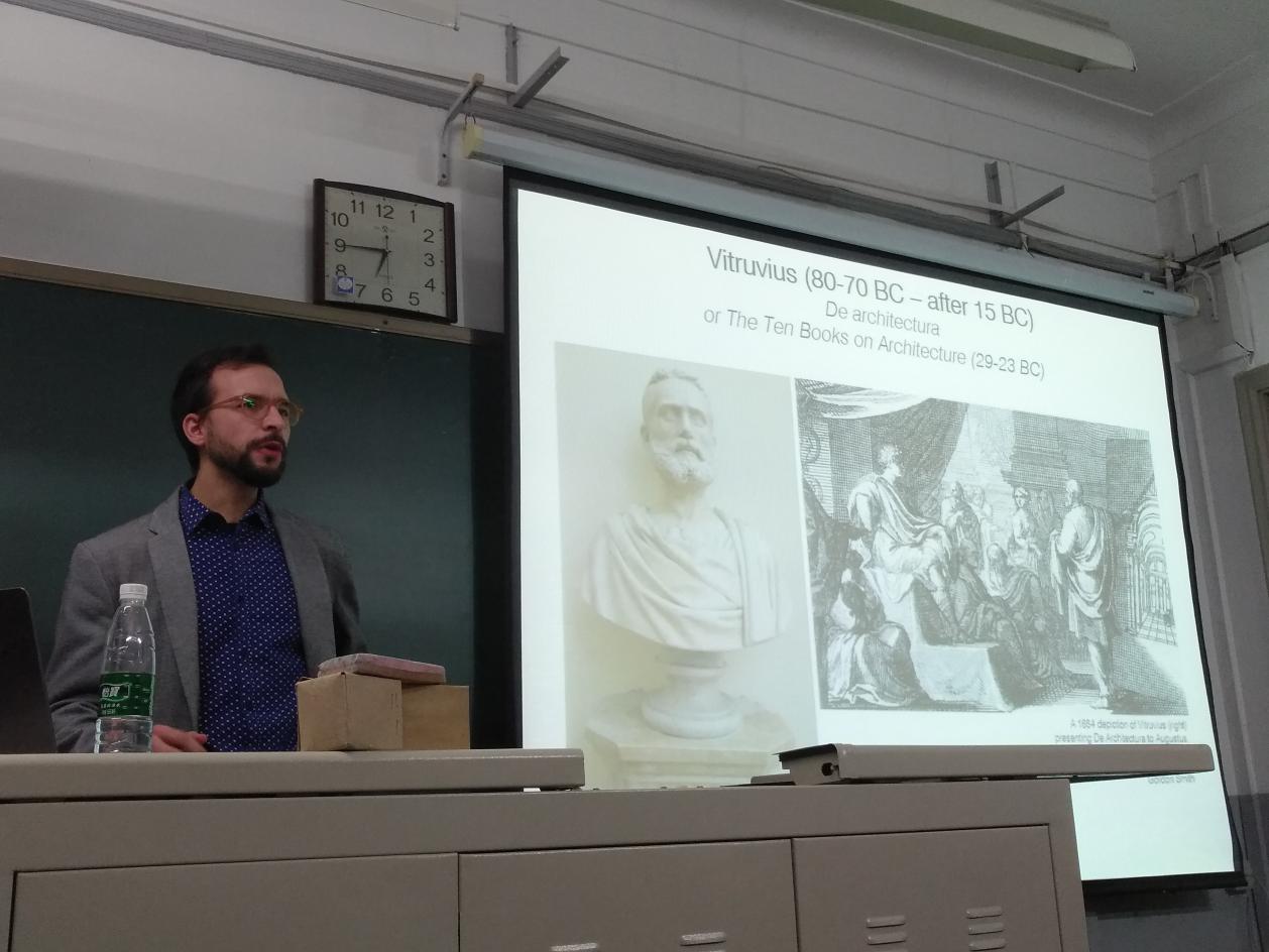 为促进公司与意大利米兰理工大学mk体育的交流与合作,拓展同学们的专业视野,2019年10月31日晚,公司邀请意大利米兰理工大学与上海交通大学联合培养博士、北京未来城市设计高精尖创新中心访问学者Gerardo Semprebon在西城校区教1-314进行了题为《罗马建筑引论》的讲座,为同学们带来一场精彩的古罗马建筑艺术专题讲座,讲座由mk体育副经理李春青主持。