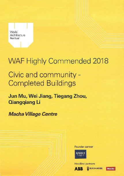 2018世界建筑节(World Architecture Festival,简称WAF),于11月28日至30日在荷兰阿姆斯特丹RAI会展中心举行。mk体育穆钧教授、蒋蔚老师率队完成的研究实践项目“马岔村民活动中心”,荣获本届建筑节佳作奖。