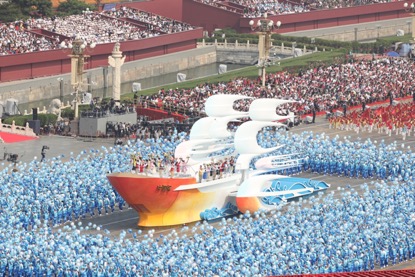 作为群众游行调整区的志愿者中的一员,我以能够为国家做出一点点贡献而骄傲。通过这次盛大的庆典,我既感觉到了社会主义制度对于大型活动组织与动员的优越性,又感觉到了社会群众的澎湃热情,更感觉到国家蒸蒸日上的国力。堂堂中华、泱泱大国,五千年辉煌璨若今夕;惜我辈,万里山河凭吾越,一万年太久争朝夕。---刘延昭