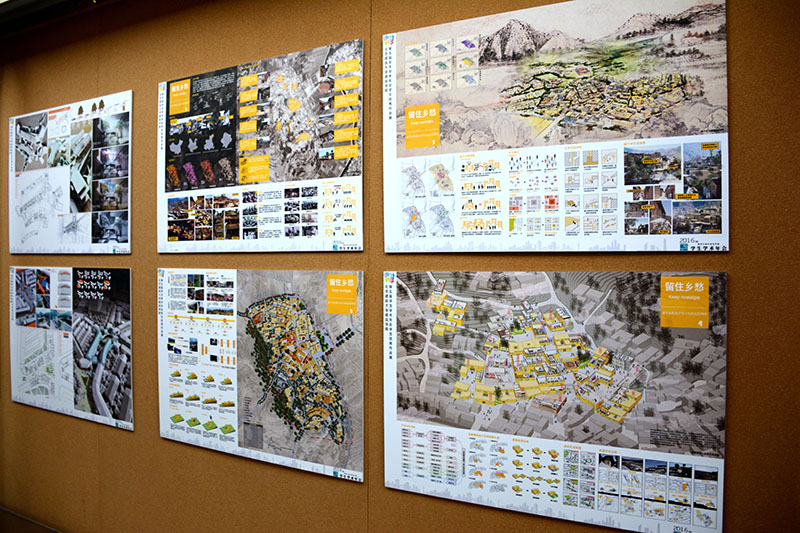 此次展览的员工作品涉及范围广阔,其中包括公共场所更新、地块研究设计、入口设计展馆设计、环境整治、四合院改造,城市规划等不同方面的研究。研究内容涉猎材料、结构,用途,文化,活力,设施,艺术,景观等。城市规划项目还对建设宜游,宜商,宜居,宜展城市进行调研与总结。图纸上附有渲染图、模型照片、复原图及文字介绍。