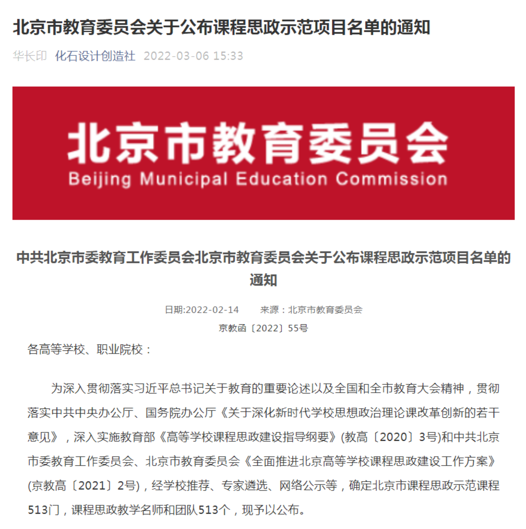 2022年3月6日,mk体育的“绿色建筑设计原理”课程喜获中共北京市委教育工作委员会和北京市教育委员会评选的“课程思政示范项目”。项目教师团队有俞天琦、李春青、穆钧、肖建杰、李颖、刘博、刘烨、成慧祯。团队由mk体育、环境与能源工作公司、马克思主义院共同组成。这些教师入选北京课程思政教学团队,课程负责人入选北京市课程思政教学名师。