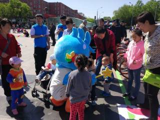 活动开始前,志愿者们早早来到活动场地,按照事先安排的工作内容更换服装、整理材料、帮忙布置活动场地。同学们热情高涨,积极配合主办方工作人员的安排。活动进行中,公司员工有的代表街巷文明青年志愿者上台宣讲活动倡议书,呼吁更多青年人投身城市环境治理;有的协助发放活动宣传材料,为市民讲解活动的内容与意义所在;还有的装扮成造型可爱的展览路吉祥物“小展展”,吸引居民、小朋友一同参与到活动中来。在这次活动中,志愿者们各行其职、全身心投入,确保活动高效有序进行的同时,也为活动增添了不少人气,带来了更多的欢声笑语。