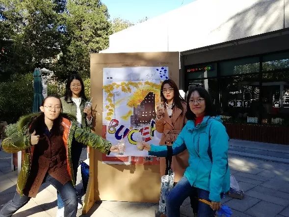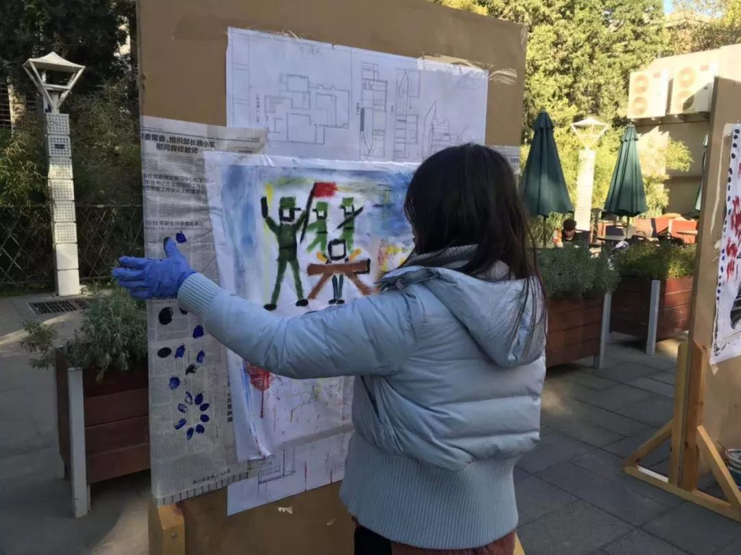 在大约14:00左右,我们邀请了许多学长学姐为喜欢的画投票。投票方式为带上手套按上自己的手印。用这种方式也吸引了许多围观的同学来投票。