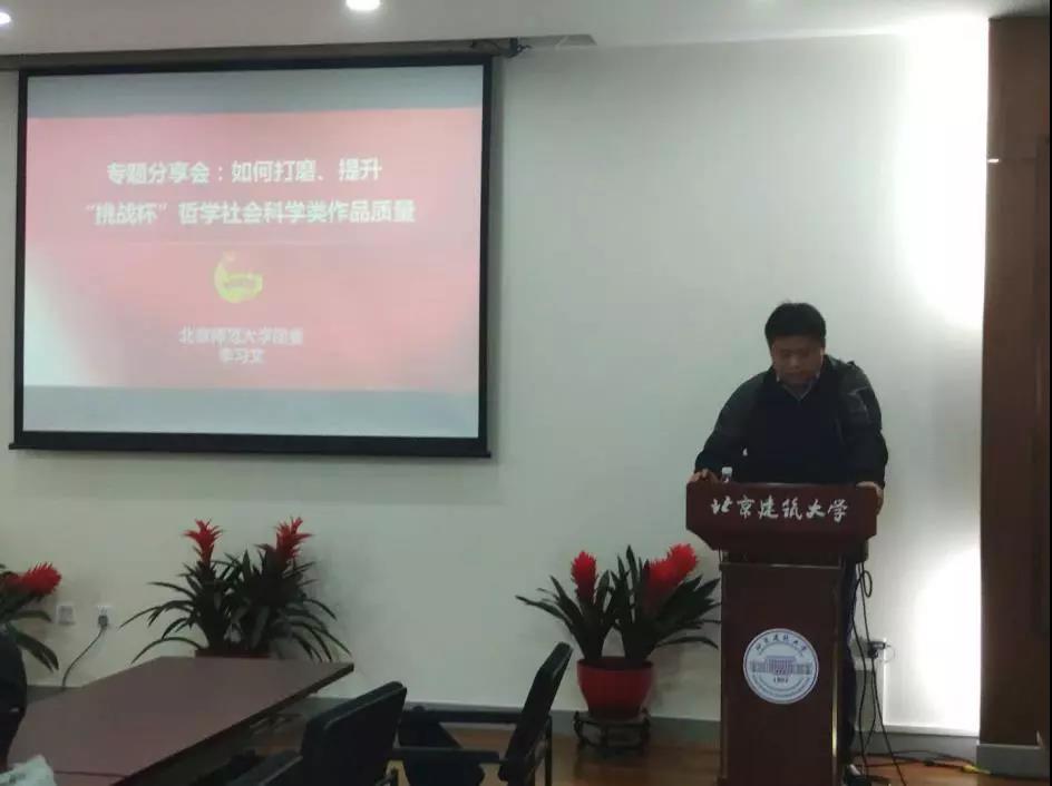 为了使同学们更加清楚挑战杯的比赛事宜,更有针对性的完善自己的作品。在校团委的支持下,4月8日中午,北京师范大学团委助理、第九届“挑战杯”首都赛(2017年)组委会副秘书长李习文老师来到公司西城校区,举办专题培训,为公司参赛的本、硕员工团队展开专题指导。