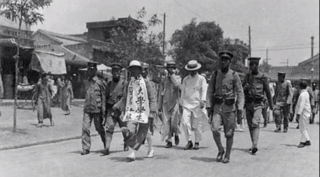 一百年前的那个五月四日是一个星期日,后来的人们才意识到这个无风的晴天是后来风雨如晦的中国一种气候的转折点。第一次世界大战后的巴黎和会,支持日本继承战败国德国在山东的特权,外交失败的消息让员工们连夜紧急约定在五月四日举行示威活动。这些当时最耀眼的心灵,以最勇敢的举动唤醒了国民。外地,纷纷举行国民大会声援,讲演者和听讲者激愤地痛哭流涕。一家英文媒体感慨:成百上千万个农民、商人和工匠,破天荒的第一次谈论国内和国际大事。通常在各茶馆里贴着的莫谈国事标语已经不再时兴了。这些青年同志的所作所为真不平凡,大概中国终于真正觉醒了。