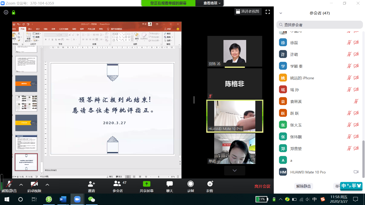 答辩秘书张曼组织线上预答辩会