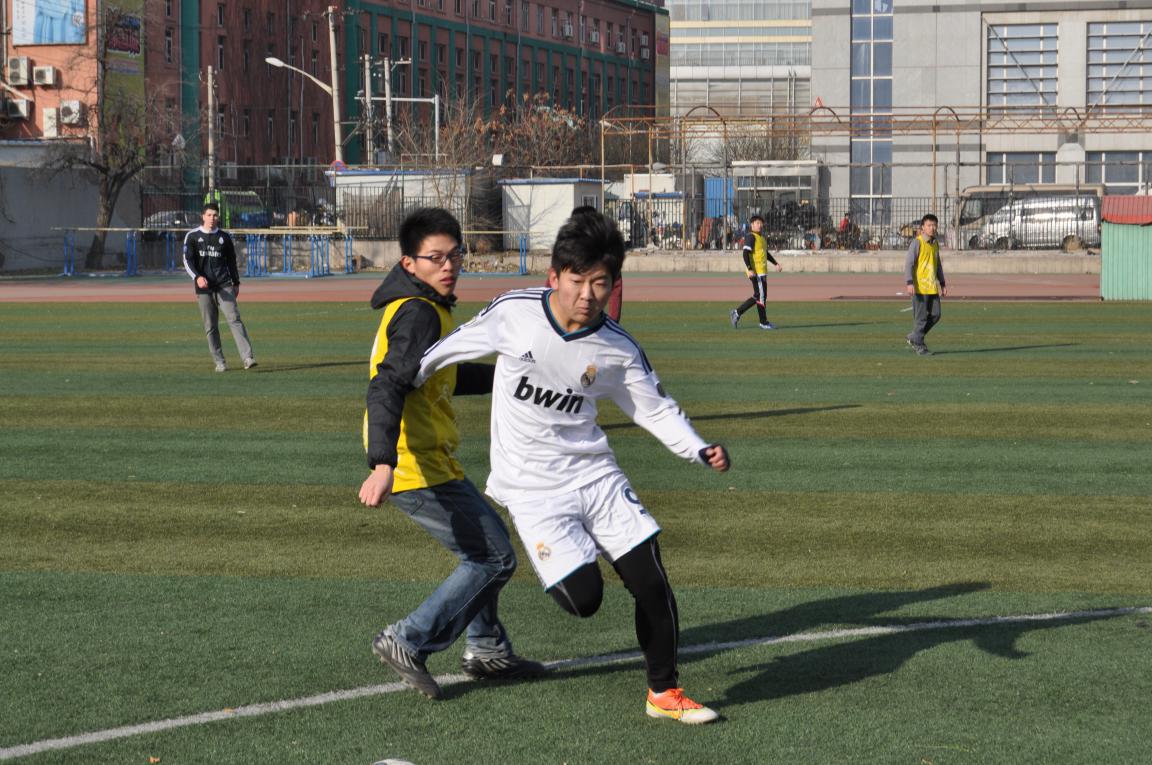 比赛进行到第五十五分钟时,研究生队凭借一粒角球,两次补射成功攻入一球打破僵局。但本科生队员并未因此而放弃,而是抖擞精神,向研究生队发出了猛烈反击,比赛气氛被推向高潮。最终,研究生队以1:0战胜本科生队。赛后,比赛组织人员为双方队员们颁发了奖品,天气虽然寒冷,但冬日的阳光洒在队员的脸上,大家的心都是暖的。