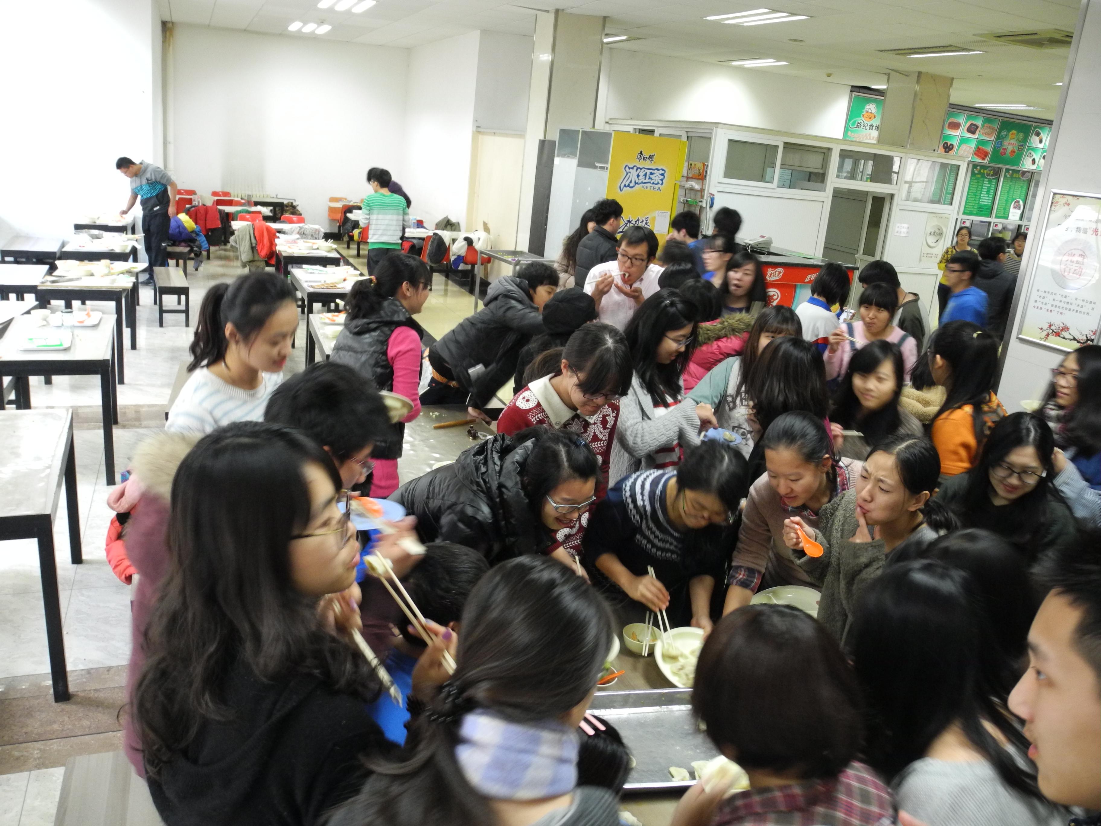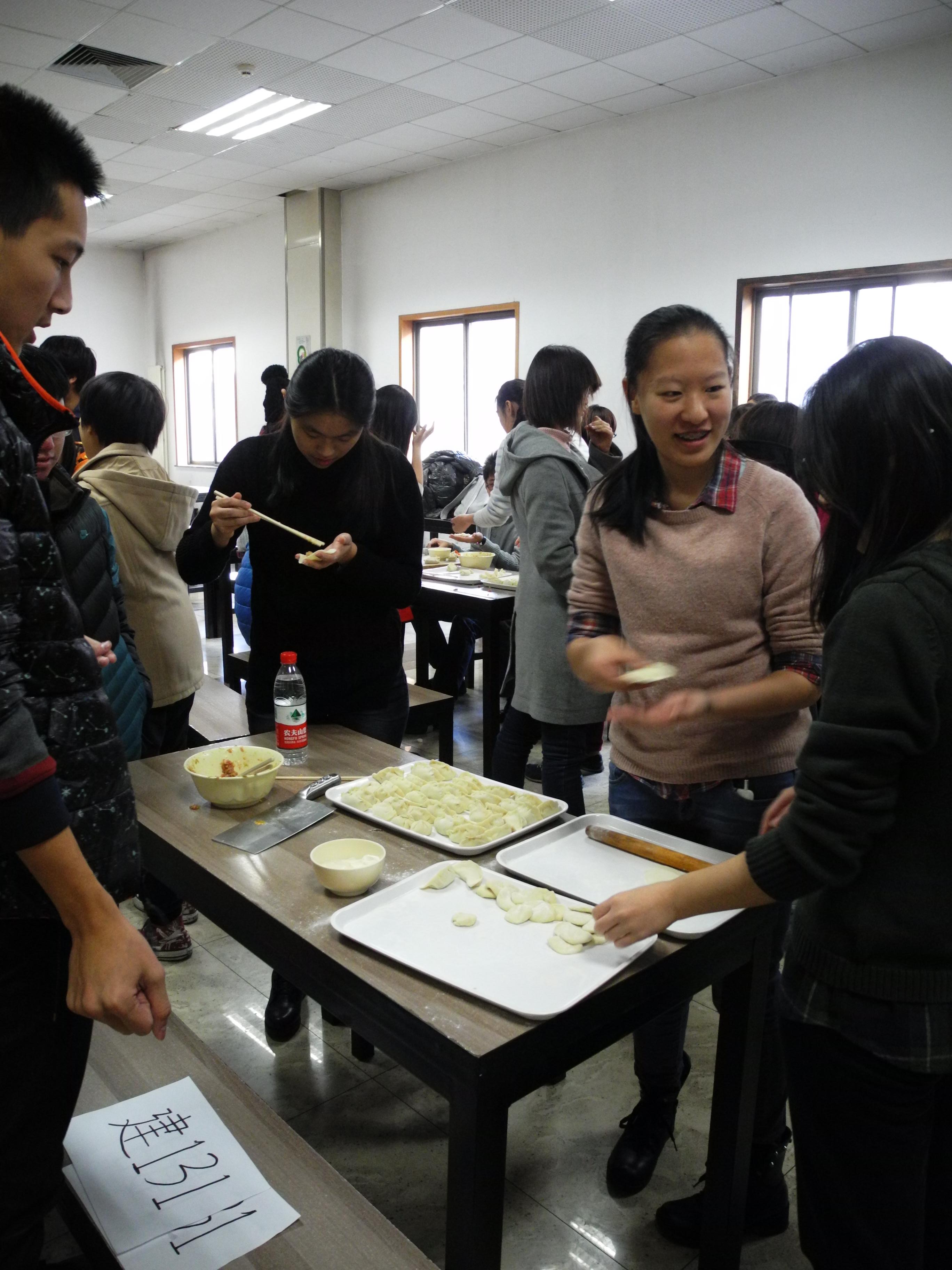 2014年12月18日下午,由​mk体育员工会举办的“当饺子遇上冷餐”——​mk体育举办冬至包饺子大赛活动在西城校区食堂二层圆满落下帷幕。参赛的各班选出两名选手后,班与班之间抽签组合成四人参赛小组进行比赛,各组成员需要分工进行擀面,拌馅儿,包饺子,才能以最快速度完成包好最少40个饺子的任务。赛后,由现场选出的十个评委选出自己喜欢的小组的“作品”,受好评最多者获胜。