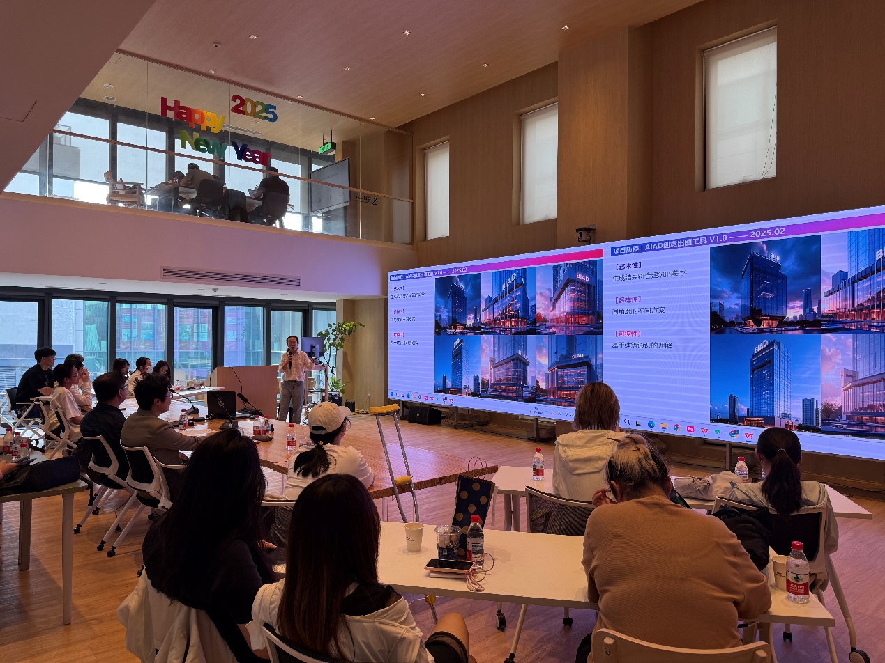 随后,数驱设计实验室主任王鲁丽以《AI辅助建筑设计》为题展开专题讲座。她通过案例演示,系统讲解AI在参数化设计、能耗模拟及空间优化中的实践价值,并现场指导员工操作智能设计平台。员工们通过实时交互,体验了AI生成方案、优化结构的高效性,直观感受技术对设计思维的拓展。