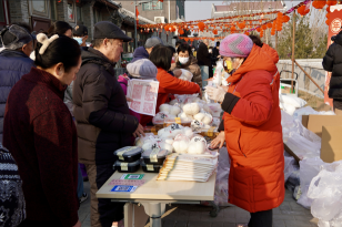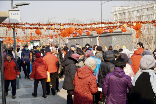 站在中轴御道向铺陈市胡同望去,欢乐人群熙熙攘攘、各色年货琳琅满目,浓浓的年味儿扑面而来。民俗体验区中,风车、对联、糖画、糖葫芦把集市的年味烘托到极致;年货售卖区中,宫门口馒头、水果干果、蔬菜调料、年画一应俱全供顾客挑选;便民服务区更为居民提供了测血压、耳穴埋豆、刮痧、口腔义诊、免费理发等公益服务。“好久没有这么热闹啦!”居民们不约而同感慨,“这才是家门口过大年的感觉!”,欢声笑语在胡同上空久久飘扬。