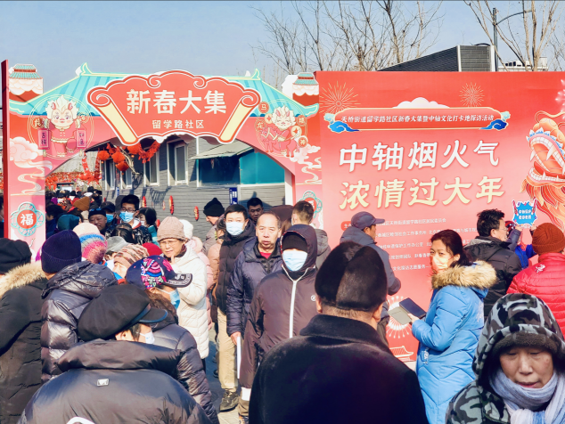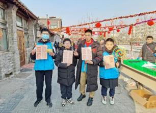 为传承中华传统民俗文化,传播北京中轴线文化遗产保护知识,增强遗产地社区凝聚力,满足居民一站式购置质优价廉年货的需求,1月29日, “中轴烟火气 浓情过大年——天桥街道留学路社区新春大集暨中轴文化打卡地探访活动”,在毗邻中轴线的鹞儿胡同东口火热开集。作为mk体育风景园林研究生第一党支部与天桥街道留学路社区党委支部共建的重要活动,支部积极组织策划,带领2022级本科生和筠篁书法研习社成员组成志愿者团队参与其中,协助完成中轴文化打卡探访活动,传播中轴文化、营造和谐社区氛围。