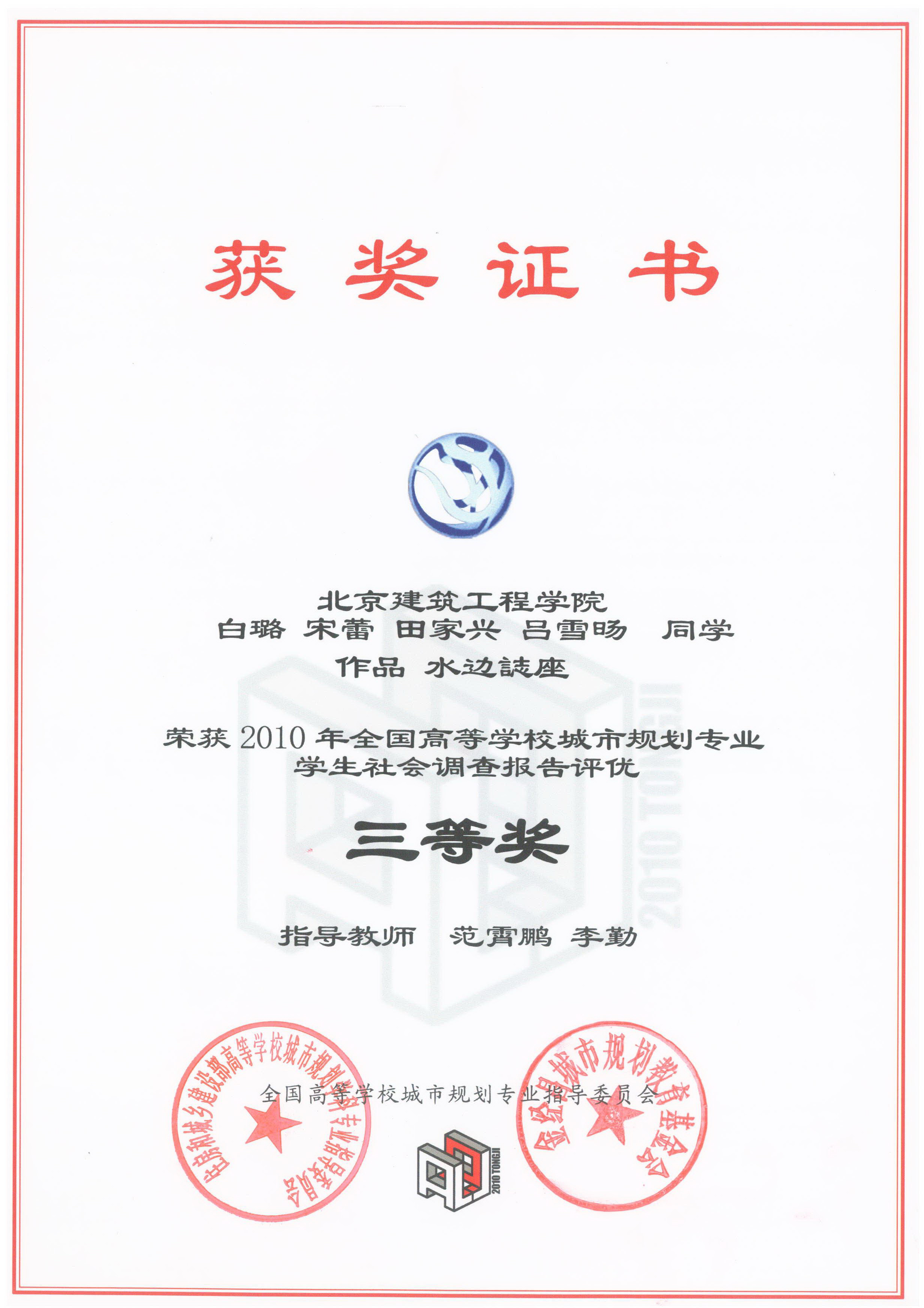 mk体育员工喜获2010年全国高等公司城市规划专业员工社会调查报告评优三等奖