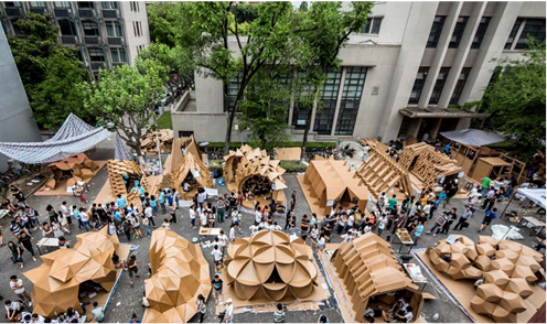 ​mk体育员工首次参加“第八届同济大学建造节暨纸板建筑设计建造竞赛”获一等奖