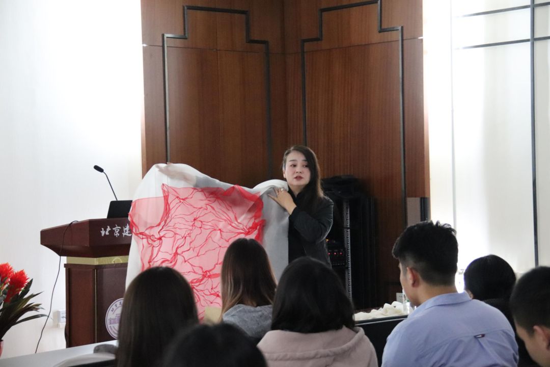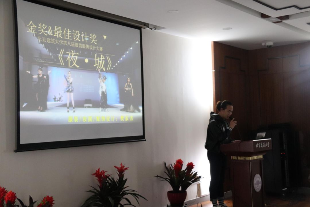 本次分享会邀请了北方工业大学的张杞峰老师、第八届mkmksport服装服饰大赛金奖及最佳设计奖获得者——土165班樊家杰同学、往届服装服饰大赛的优秀模特——建实151班的魏安娜同学,给参赛者分享服装设计和制作的经验。