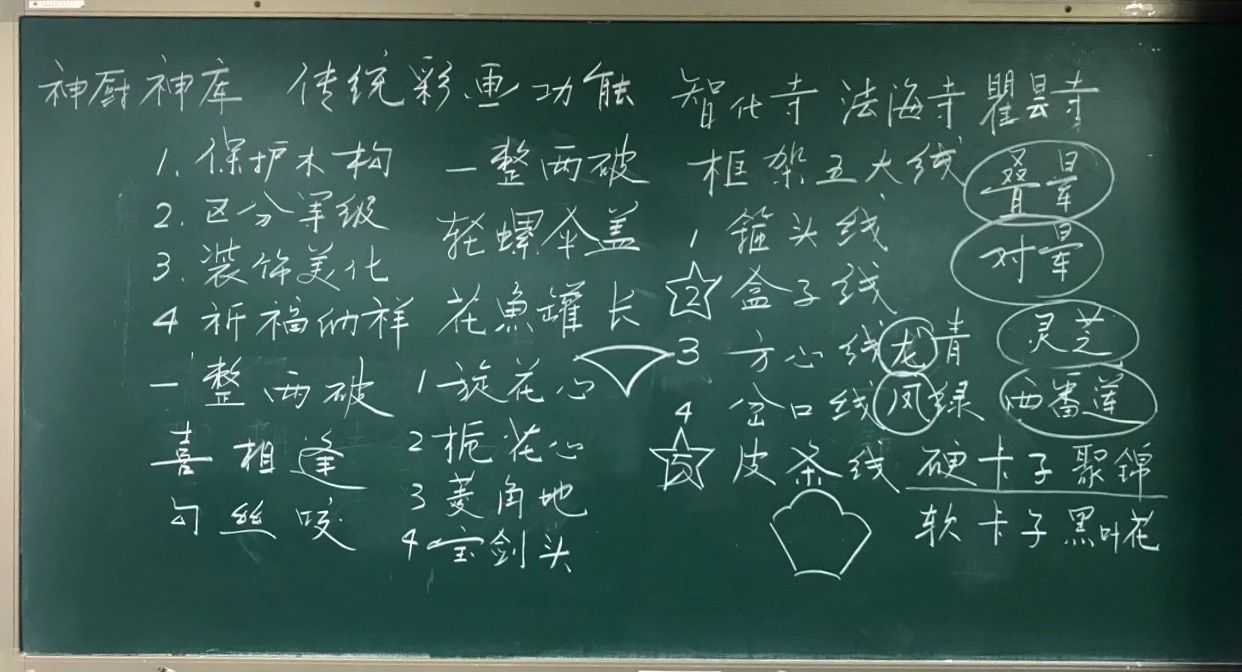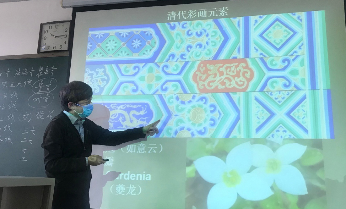 李沙教授从建筑彩画与传统木构建筑的关系谈起,系统讲述明清建筑彩画的分类、等级、色彩、元素、范式及工艺流程等,辨析明清建筑彩画产生的时代背景及其艺术倾向差异。向员工展示了不同时代建筑彩画艺术的独特魅力。李教授指出,建筑彩画于2021年正式成为国务院第五批国家级非物质文化遗产代表性项目,充分说明了建筑彩画作为中华优秀传统文化的艺术价值,也将为建筑彩画的继承与发展带来了新的契机。希望同学们通过课程学习,了解建筑彩画的表达方式和特殊的色彩规律,掌握建筑彩画绘制的基本程序,从中体会建筑彩画艺术的形式美及其深厚的文化内涵,提升保护中国传统文化遗产的责任感,继承与弘扬优秀的传统建筑艺术,增强文化自信。