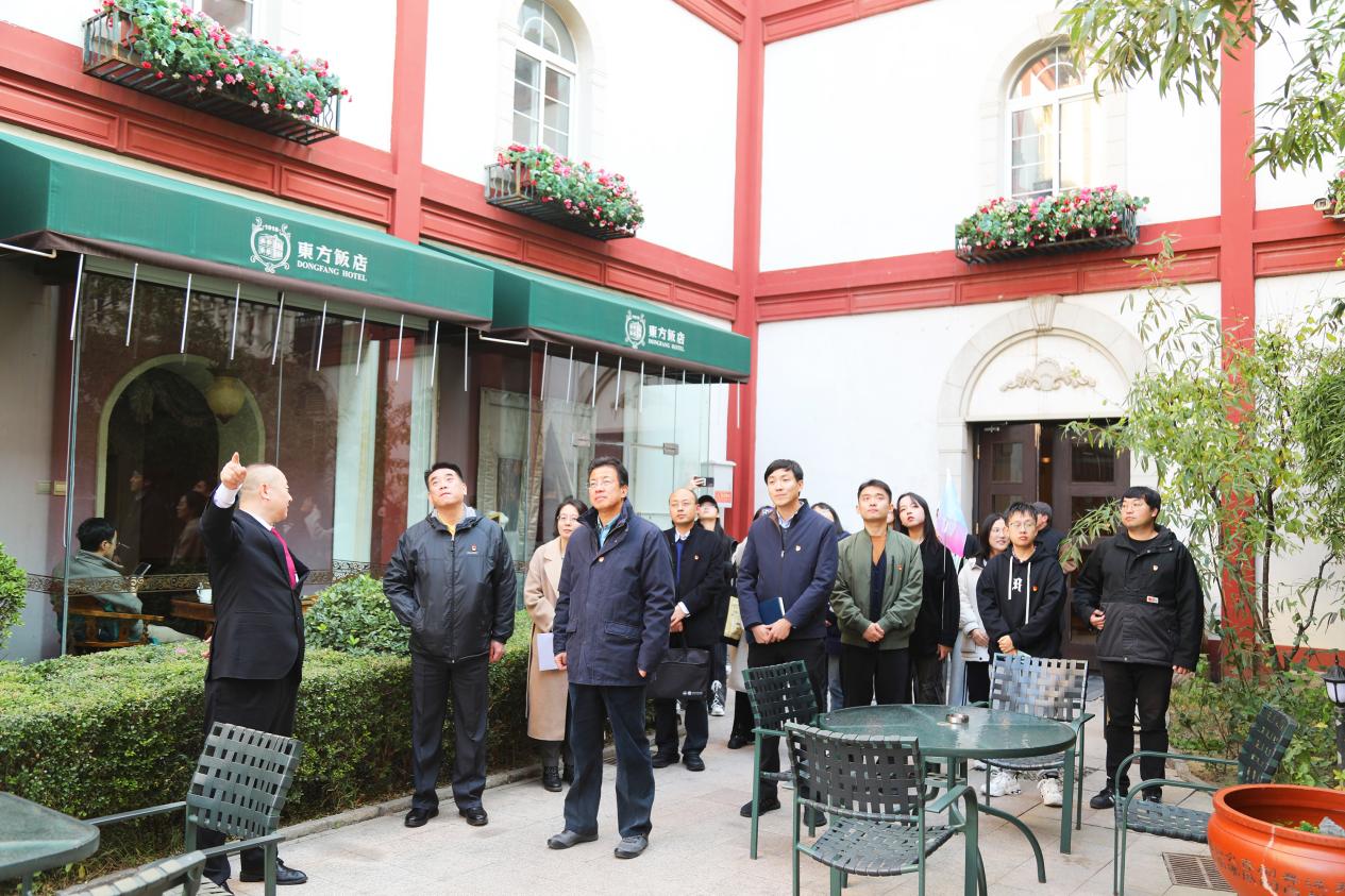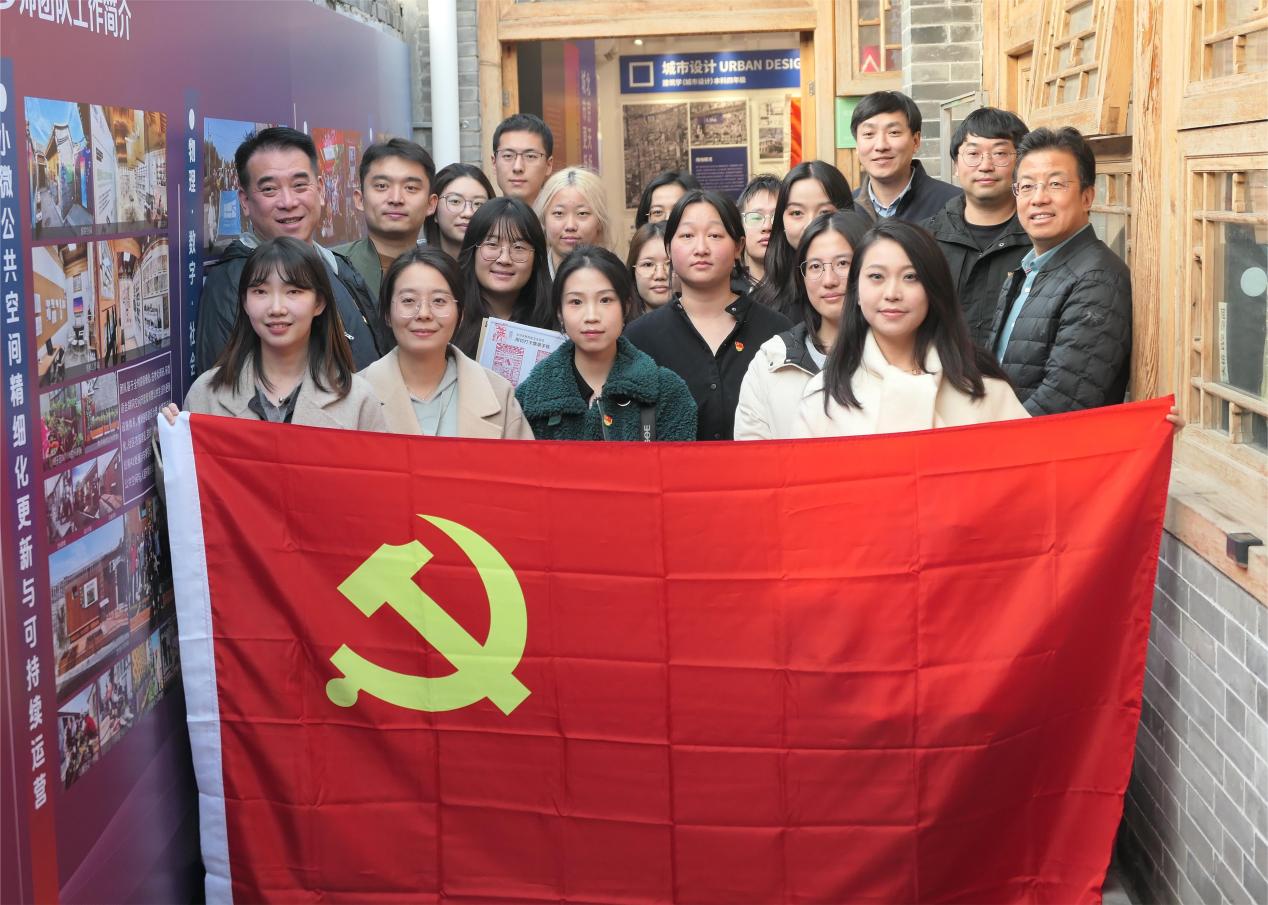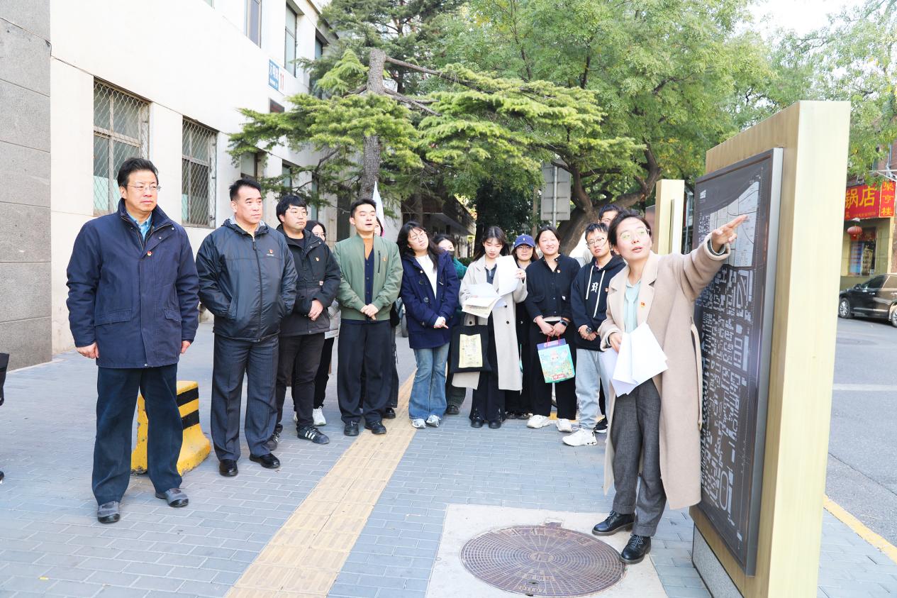 天桥文化探访环节,师生共同参观了五四新文化运动的名人常驻的北京东方饭店、新世纪游艺园旧址等红色点位,了解天桥地区红色革命历史。随后,游览了泰安里文化艺术中心,这里是西城区首批文物建筑活化利用计划项目之一,也是公司泰安里建筑文化艺术中心·建筑遗产活化利用驻地实验室等平台驻地。沿着探访路线,师生党员继续深入了解了北京南中轴天桥留学路地区的历史文化,参观了胡同焕新立面改造施工现场,感受了老北京充满烟火气息的热闹场景。
