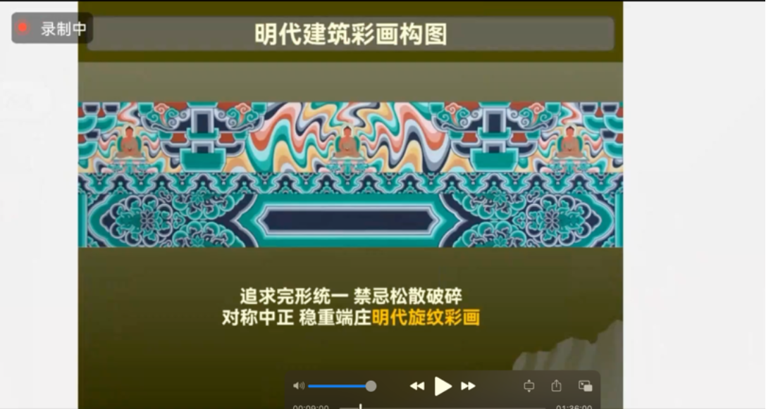 讲座中,李沙教授从明代建筑彩画的分类、等级、元素、范式及工艺流程等几个方面向员工展示了传统建筑彩画艺术的独特魅力。李教授指出,建筑彩画在2021年5月已正式成为国务院第五批国家级非物质文化遗产代表性项目,这充分说明了建筑彩画作为中华优秀传统文化的艺术价值,也将为建筑彩画的继承与发展带来了新的契机。在传统装饰设计课堂上开设建筑彩画专题,有助于员工深入了解建筑彩画这门中华优秀传统文化,激发员工对于传统装饰的兴趣,进一步弘扬建筑彩画这门非遗技艺。
