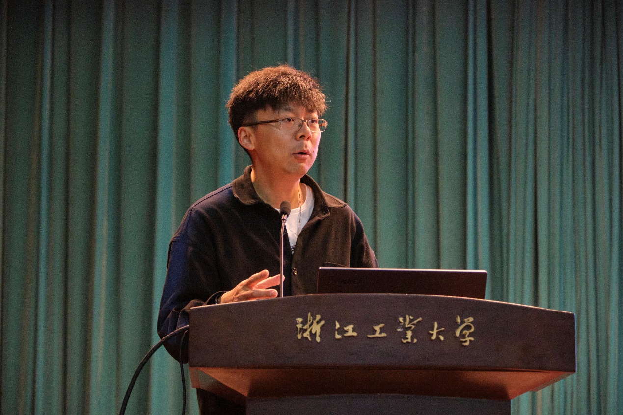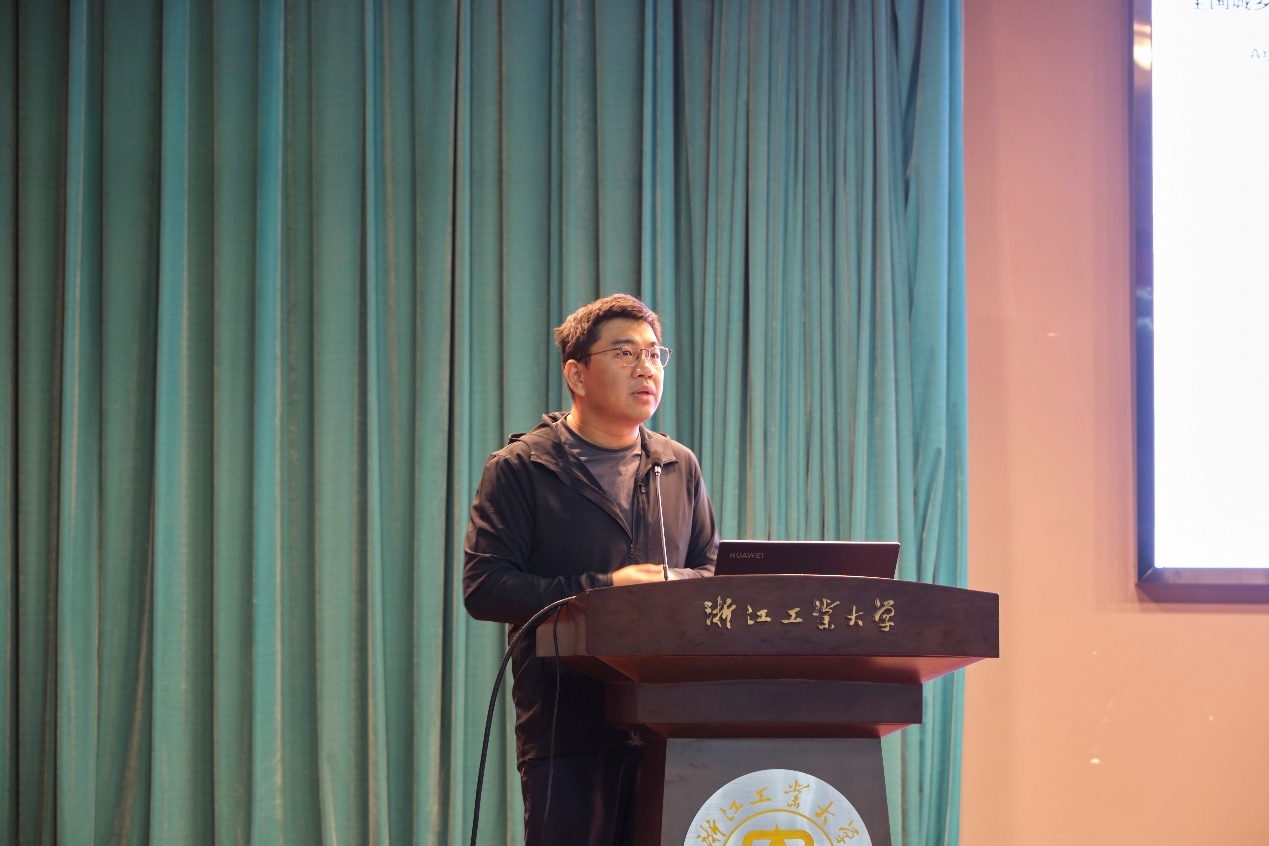 浙江工业大学设计与mk体育陈炜副经理致辞欢迎。陈经理希望同学们能在相互交流中增进了解,两个月后各位同学即将成为同行,甚至有可能成为同事,共同建设祖国,最后期待同学们能有出色的发挥。