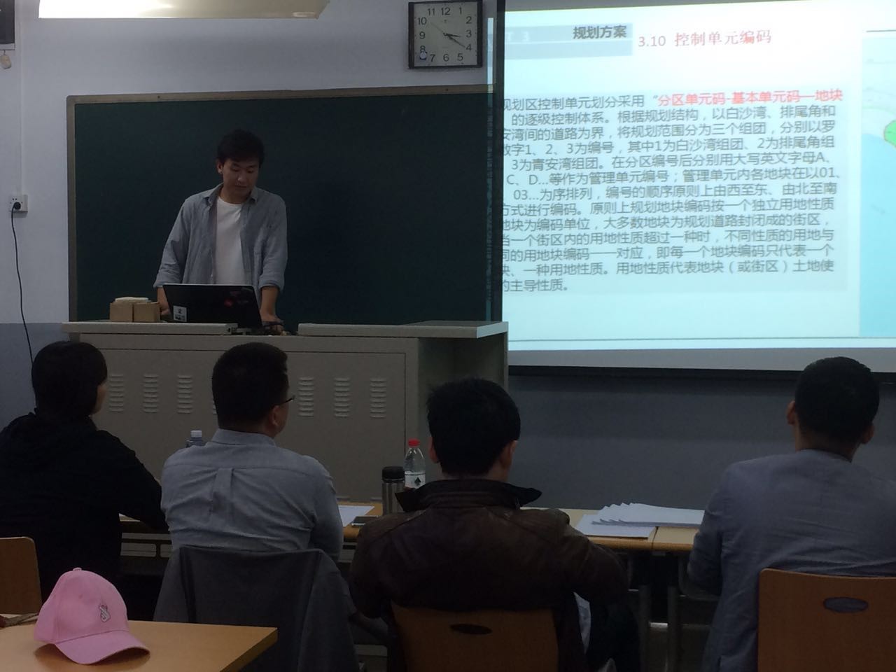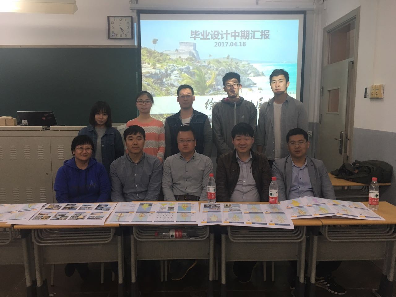 4月18日下午一点,教学一号楼322教室正在进行的是12级城市规划专业毕业班“徐闻排尾角国际旅游度假区控制性详细规划”组的中期汇报答辩。参加该组答辩的老师有:组长孙立老师,委员苏毅老师、桑秋老师、陈晓彤老师、李勤老师,秘书张振威老师。徐闻排尾角毕业设计组的同学有:组长张琼,组员王秋晨,张斌炜,侯壮,吴双。