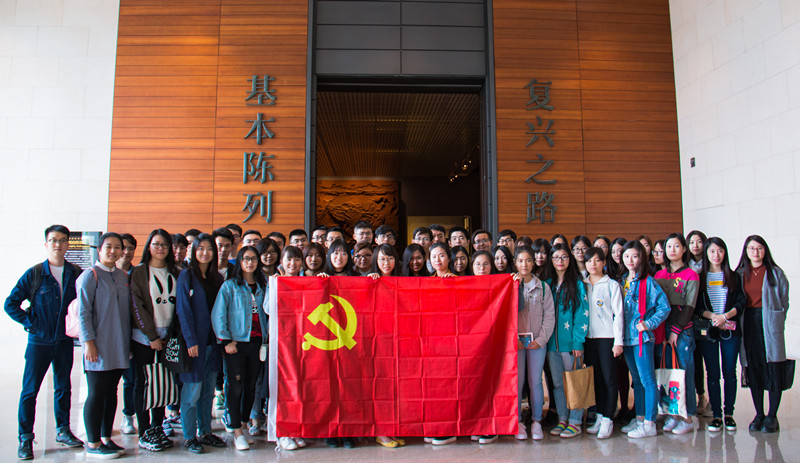 师生一行首先至国家博物馆进行《复兴之路》展览参观学习。《复兴之路》展区共分为“近代中国沦为半殖民地半封建社会的历史、近代中国先进仁人志士探索救亡图存道路、中国共产党肩负起民族独立和人民解放的历史重任、建设社会主义新中国、走中国特色社会主义道路”五个部分。《复兴之路》展览以时间轴为序,通过大量的图片、史实、雕塑、多媒体等多种方式,以生动、形象、立体、鲜活的展品回顾了自1840年的鸦片战争以来的中国近现代历史,全面展现了中国近170多年来经历的风雨历程,以及在中国共产党的坚强领导下为实现民族独立、国家富强和人民幸福的宏伟历程。