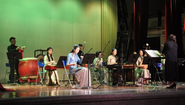 一开场,mk体育张忠国、荣玥芳、王秉楠、王晶四位老师带来了诗朗诵《建-证》,朗诵展现了mk体育教师的风采,带动了观众的情绪。在主持人介绍后,是民族打击乐合奏《黄河船夫曲》与西洋打击乐合奏《黄金时代》演技技法丰富、具有非常强烈的感染力。