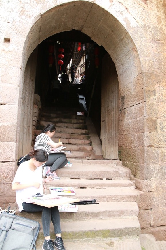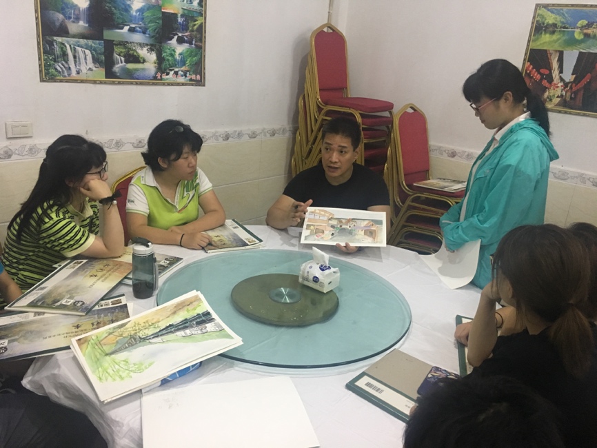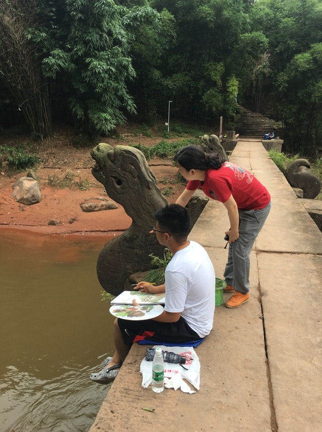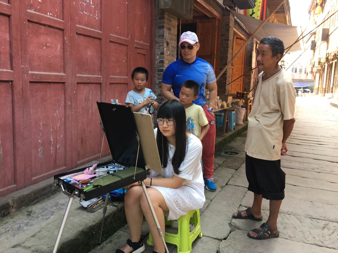 在抵达目的地之后,员工们稍作调整,便背上画具,走过吊桥,踏进古镇,用心和画笔感受古镇之美、山川之美,将其收入画中,有的人描绘出旖旎的阳光、有的人展现了古镇的闲适、还有的人表达着特色的吊脚楼,老师们更是悉心指导,不断为员工们修改调整,并适时安排集中评图,使员工在交流中得到启发、在观察中得到锻炼。