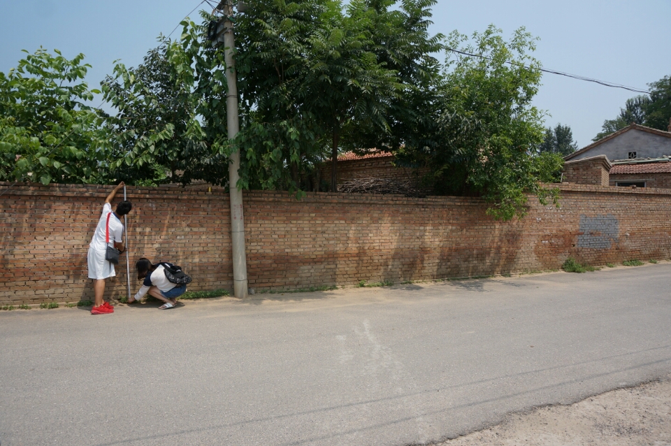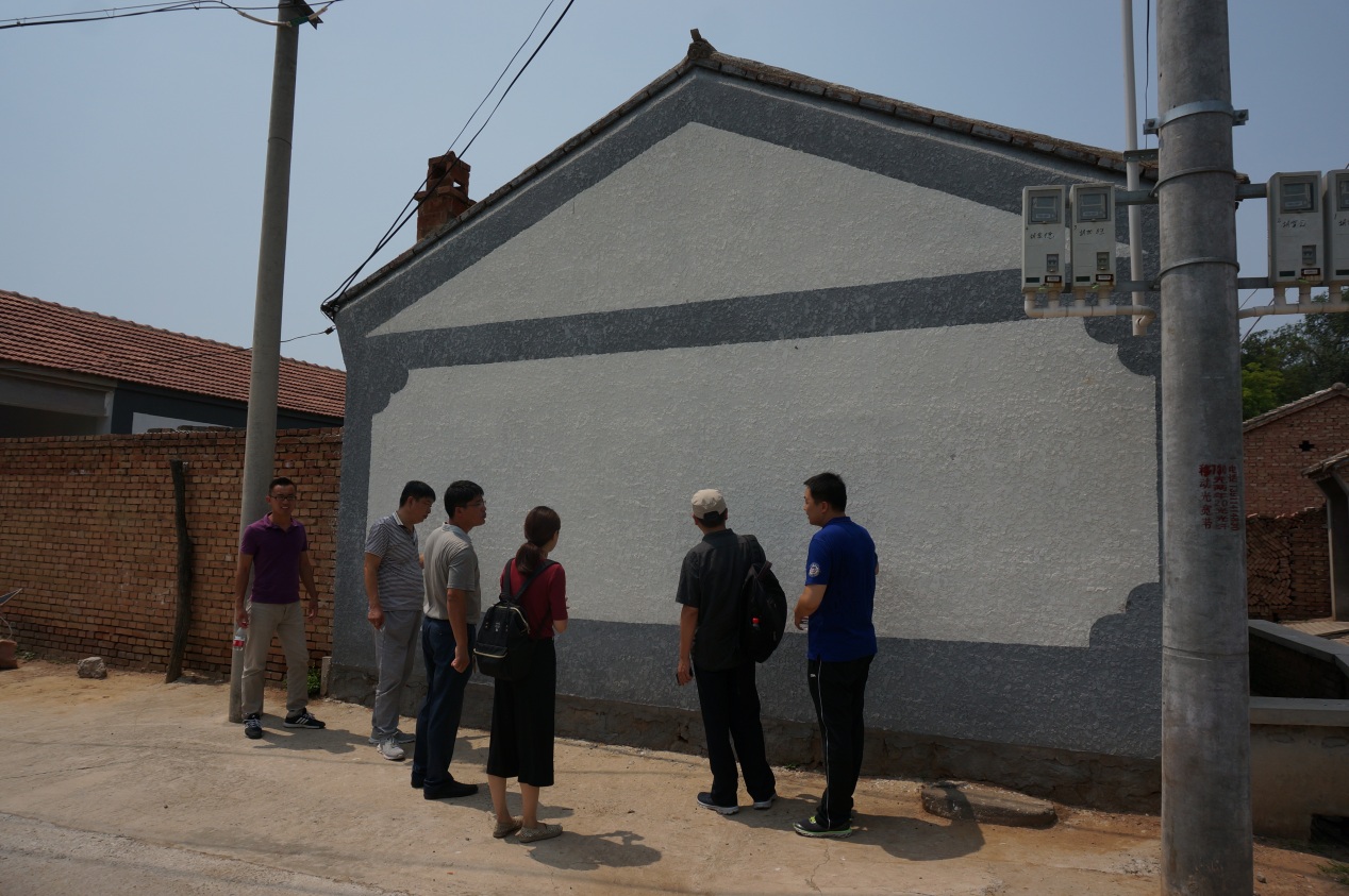 在村干部的热情带领下,实践团队师生对村内现状以及墙面情况进行了考察、测量和记录数据,并参观了胡家营村中的民俗文化及发展产业。在此基础上,师生与村干部一起,有针对性的分析了胡家营村的需求和发展,将乡土文化、历史景观、党建以及发展产业结合,确定了墙面美化设计的大致内容,团队全体成员将于近期赴胡家营村开展实际绘制工作。