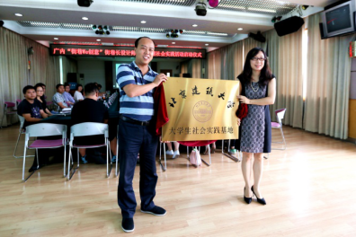 会议开始,赵诒钊副主任首先介绍了“街巷 We 创意” 广内街道街巷长设计师助理暑期社会实践活动方案。接着,由史锋主任与朱静老师为“mkmksport老员工社会实践基地”进行揭牌。