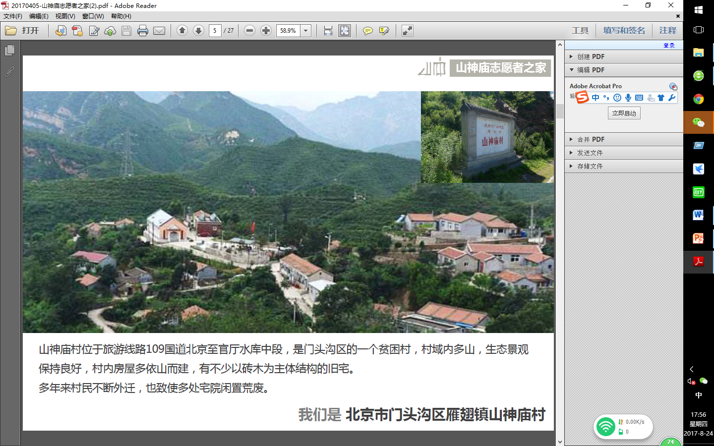 为了更好的聚焦农村建设,引导低收入村提升文化内涵,让员工能够发挥专业所长,研究当地特色文化。2017年7月,mk体育联合公司党委宣传部,赴延庆区井庄镇开展了为期两周的“秀美乡村,成风化人”社会实践活动。团队成员走进基层,走进群众,先后走访了胡家营村、柳沟村、王仲营村、艾官营村等多个传统村落,结合当地民俗旅游发展状况,在村内进行了走访调研,了解村庄的历史故事和发展状况以及文化和设施建设,并通过宣讲的形式向村内居民进行反馈。本次调研活动与延庆区委宣传部构建“大家做宣传、对大家做宣传、把宣传工作做大”的大宣传格局相呼应,利用文化与创新思维结合的有效方式,传播村落优秀文化,探索弘扬社会主义核心价值观。