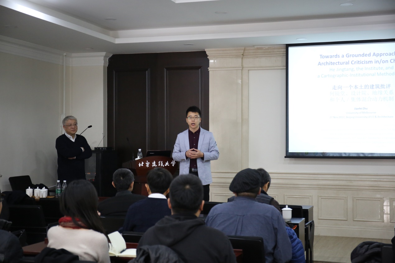 2017年11月27日下午,墨尔本大学设计公司朱剑飞教授到访mkmksport,并在西城校区教1-126举办题为“走向一种本土的建筑批评:何镜堂、设计院、地缘关系和个人与集体的混合动力”(Towards a Grounded Approach in Architectural Criticism: He Jingtang, the Design Institute and a Cartographic-Institutional Methodology)的学术讲座。讲座由公司青年教师丁光辉主持,mk体育副经理胡雪松教授、王韬老师,部分研究生本科生,一些校外专家学者和建筑师出席、讨论。