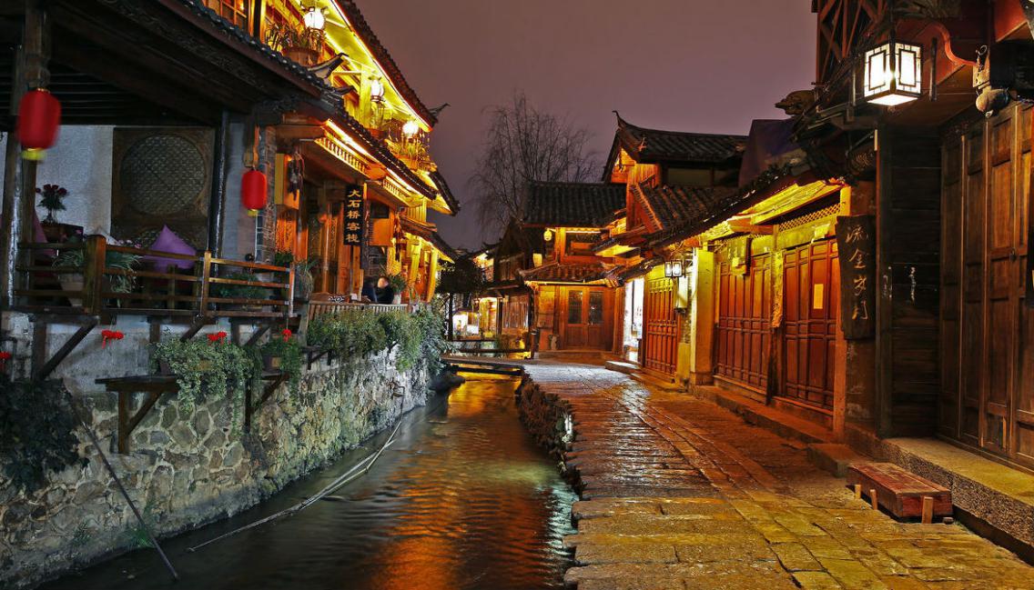入夜,来到古城。暖色调灯光下的古城是繁华和热闹的。商业之下,很难再看懂纯粹的白族生活,只有那古老的青石板和老房子承载着这里的故事,这时候的古城也是最为安静的时刻,关着门的酒吧、餐厅、鼓点还有游人,还原了它该有的古朴和沧桑,青石板路上走着这座城市为生活忙碌而早起的原始居民们。古城始建于宋末元初,由丽江木氏先祖将统治中心由白沙古镇迁至现狮子山 ,开始营造房屋城池,称“大叶场” 。古城名称来源据说是因为丽江世袭统治者姓木,筑城势必如木字加框而成“困”字之故。丽江古城的纳西名称叫“巩本知”,“巩本”为仓凛,“知”即集市,丽江古城曾是仓廪集散之地。丽江古城未受方九里,旁三门,国中九经九纬,经途九轨的中原建城复制影响。城中无规矩的道路网,无森严的城墙,古城布局中以三山为屏、一川相连;水系利用三河穿城、家家流水;街道布局经络设置有着曲、幽、窄、达的风格。丽江古城的格局是自发性的形成坐西北朝东南的朝向形式。以水为核心的丽江古城因水的活用而呈现特有的水巷空间布局。桥梁密集是丽江古城最大的特色。在外部造型与结构上,古城民居揉合了中原建筑和藏族、白族建筑的技艺,形成了向上收分土石墙、迭落式屋顶、小青瓦、木构架等建筑手法,在建筑布局形式、建筑艺术手法等方面形成了独特的风格。让人一入古城便倾心于此,仿似回到古色古香的曾经。