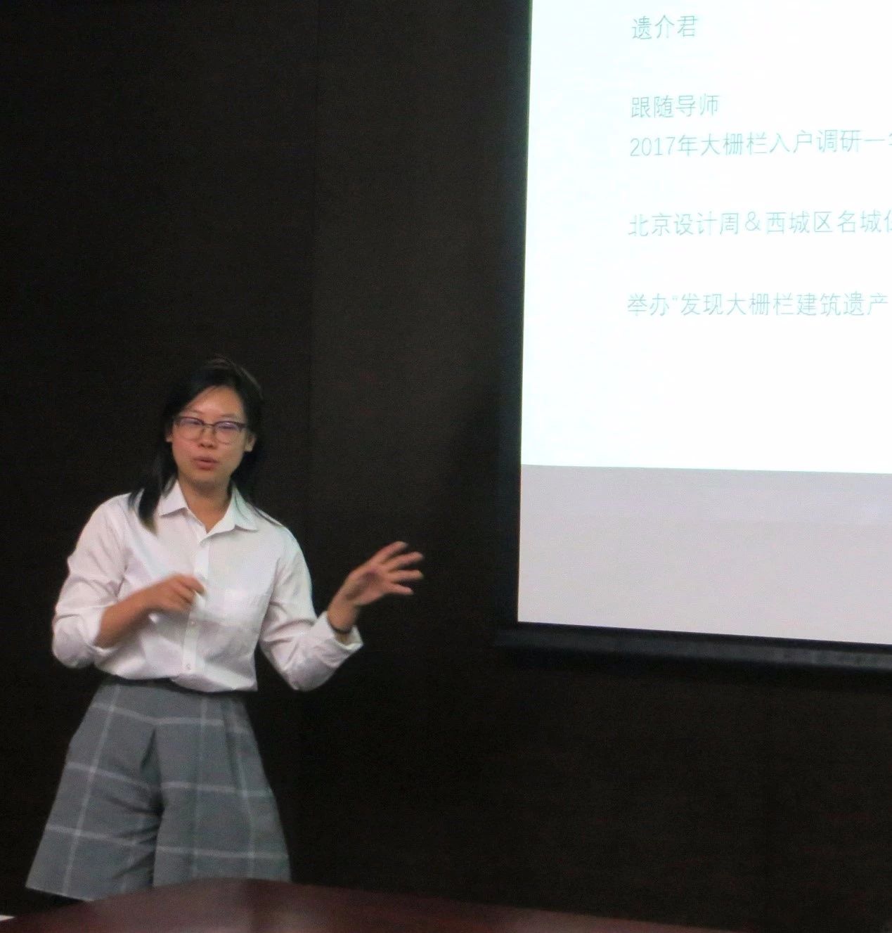 陈婉钰,北京工业大学风景园林学硕士研究生,讲座题目为“遗产保护的大众普及—垂花门”,从新媒体视角解读如何并良好的实现古建筑知识面对社会大众的推广。他回想到在大栅栏调研过程中使用者与国内游客对四合院背后的故事所知甚少,由此,这些文化遗产不断遭到破坏,于是萌生出用新媒体,诸如微信等平台,使用多元的方法向大众推广古建筑知识。
