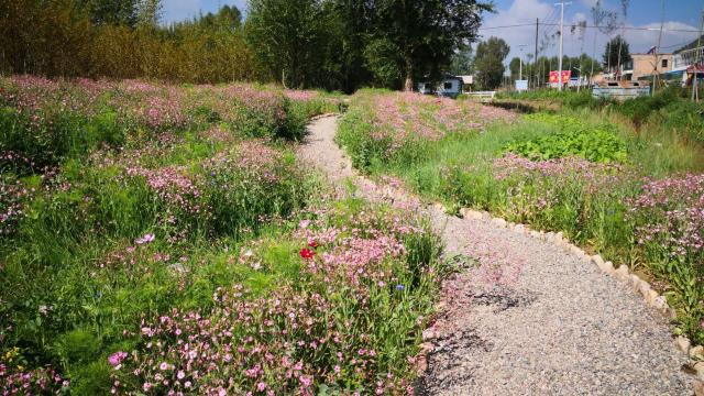 生态治理后的村南河道和小路