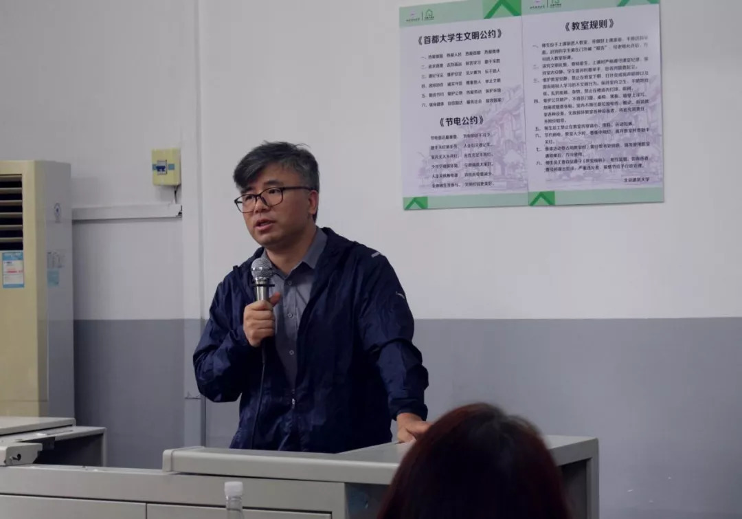 随后,课程负责老师晁军老师分享了课程经验,大四是同学们员工生涯的关键,希望同学们多跟老师交流。中国建筑标准设计研究院北京分院许彦淳工作室主任许彦淳建议同学们注重创造,而不是拘泥于规范。副经理欧阳文代表公司向员工表示衷心感谢,感谢他们把对公司、公司的爱传承下来。随后,中联环工程设计有限责任公司总建筑师赵敏表达了自己对2015级同学的期望,告诉大家要重视自己的专长,重视设计的创造力。最后,远洋地产设计研究院经理窦志告诉同学们“只想当下,不去看未来,当下一定走不好”,要坚持“诗和远方”。