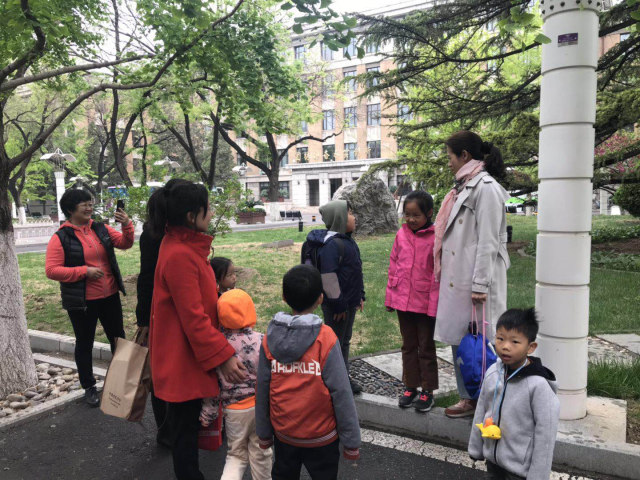 2019年4月20日上午9:00,mk体育分工会开展教师亲子科普活动。部分教师的7位小朋友和爸爸妈妈来到了mkmksport西城校园。在细雨中进行了亲子营的第一期活动:春季里的植物观察。