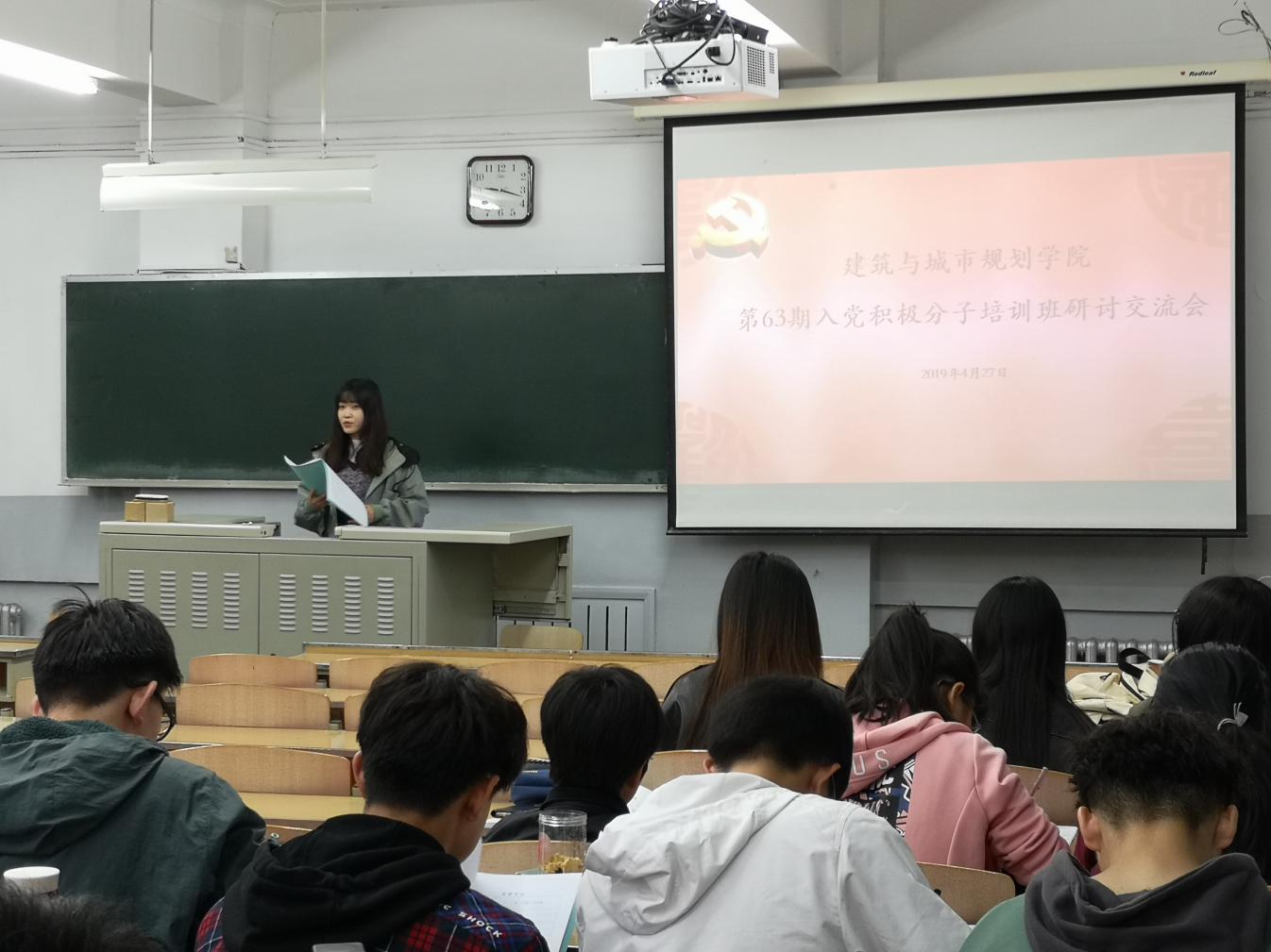 会议伊始,各位积极分子就入党动机和党员先进性进行激烈的小组讨论,之后每组派出一名代表上台发言。发言代表们分别阐述了自己的入党动机以及对自我的严格要求,纷纷表示思想上要严格以党员标准要求自己,锻炼党性修养、提高政治素养;学习上要勤奋学习、力争上游,为班级同学做表率;生活上要严于律己、团结同学,树立勇于吃苦、无私奉献的价值观,将先锋模范精神发光发热。