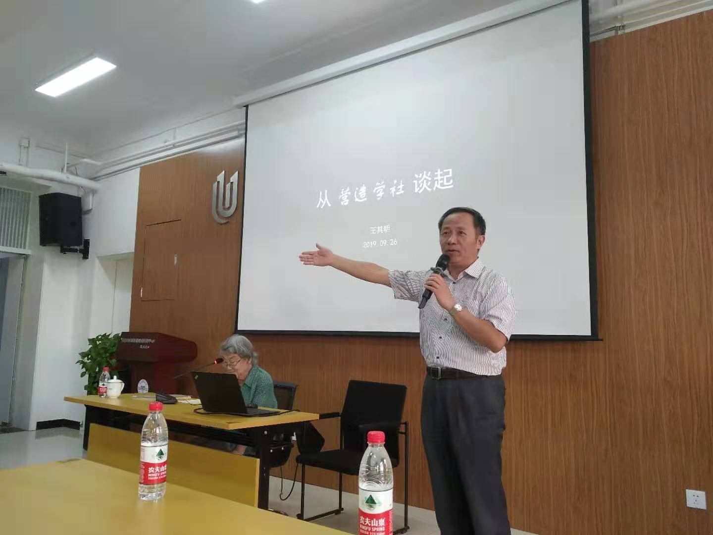 为了响应习近平同志为核心的党中央提出的关于文化遗产保护的思想理论,加强公司建筑遗产保护人才培养质量和提高广大师生的历史文化积淀,2019年9月26日,公司mk体育与北京未来城市设计高精尖创新中心共同主办了大师讲堂《从营造学社谈起》,请mk体育(原建筑系)资深教师王其明先生在西城校区科研楼110报告厅开讲,讲座吸引了社会各界学者和公司师生近百人。公司副董事长张大玉教授主持了讲座,高精尖创新中心办公室主任李雪华、mk体育副经理李春青等公司师生共同聆听了讲座。
