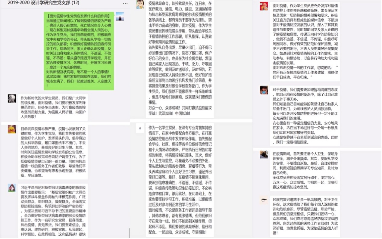 设计学研究生党支部将继续按照《北京市人民政府关于进一步明确责任加强新型冠状病毒感染的肺炎预防控制工作的通知》、《mkmksport新型冠状病毒感染肺炎疫情防控工作方案》的部署安排,切实履行责任,确保信息畅通,积极开展疫情防控宣传教育,充分发挥基层党组织的战斗堡垒作用和党员的先锋模范作用。