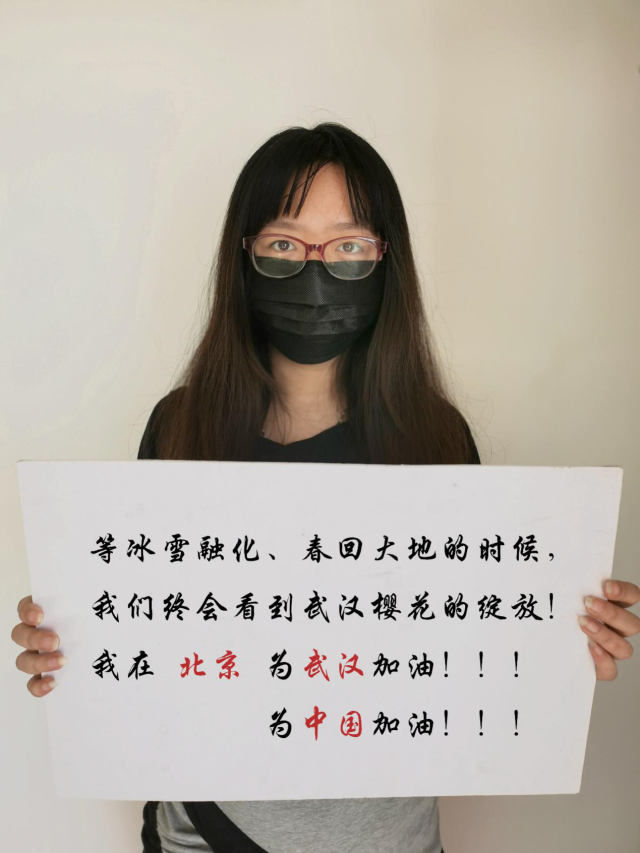 等冰雪融化、春回大地的时候,我们终会看到武汉樱花的绽放。我在北京为武汉加油,为中国加油! ——建研19级 杨梦