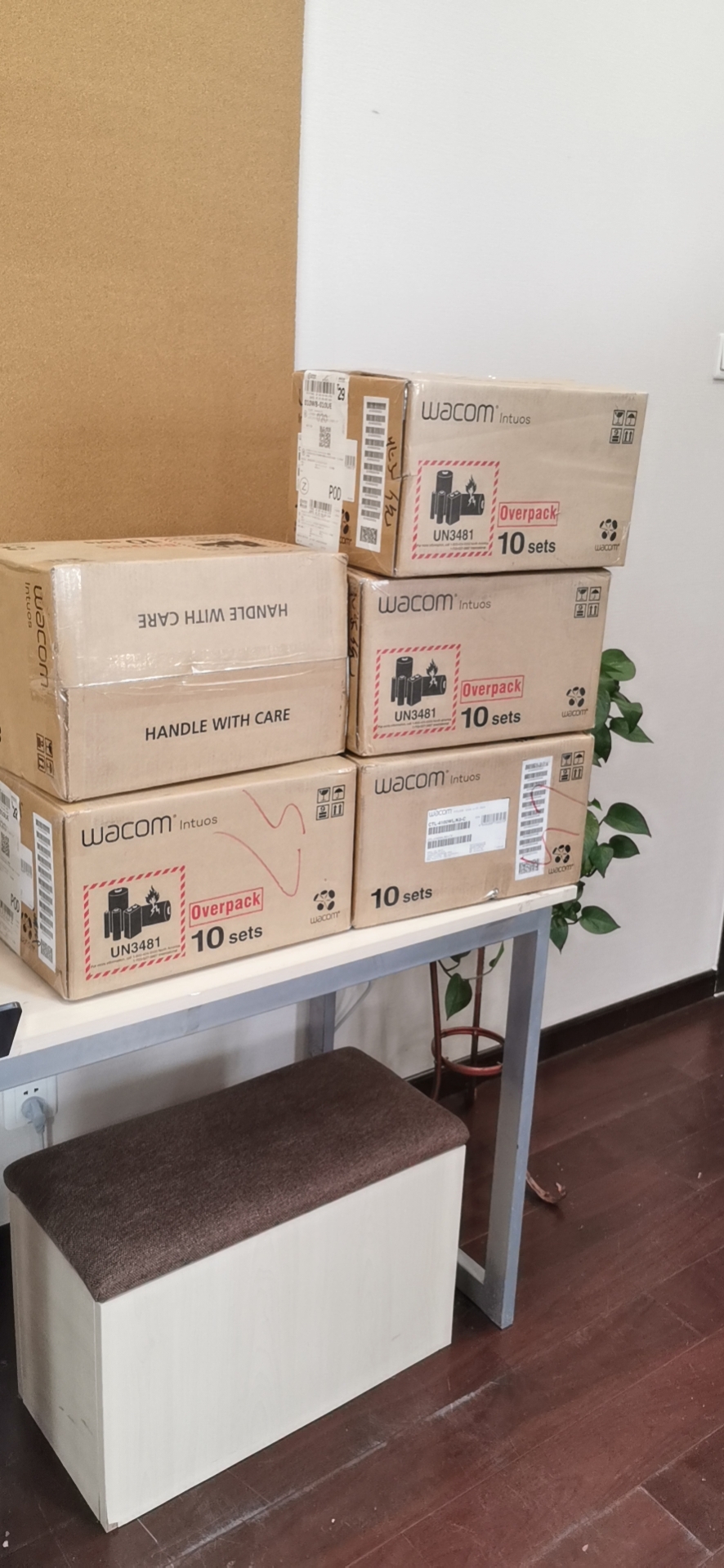 集团教务处充分考虑mk体育核心课程——设计类课程的教学特点,即以设计原理讲授与设计讨论相结合的互动式教学为主。他们积极想办法多方联系货源,为老师们提供在线互动教学的辅助设备——Wacom数位板,它能助力老师们有效顺畅地进行线上的文字书写、图形绘制与设计交流、讨论。因疫情期间备货有限,需分批发放,在这种情况下,公司仍急人所急,在2月24日专门为mk体育配备了50个,旨在尽早用于设计教学中。第二批50个写字板在3月24日中午,从大兴校区运抵西城校区。