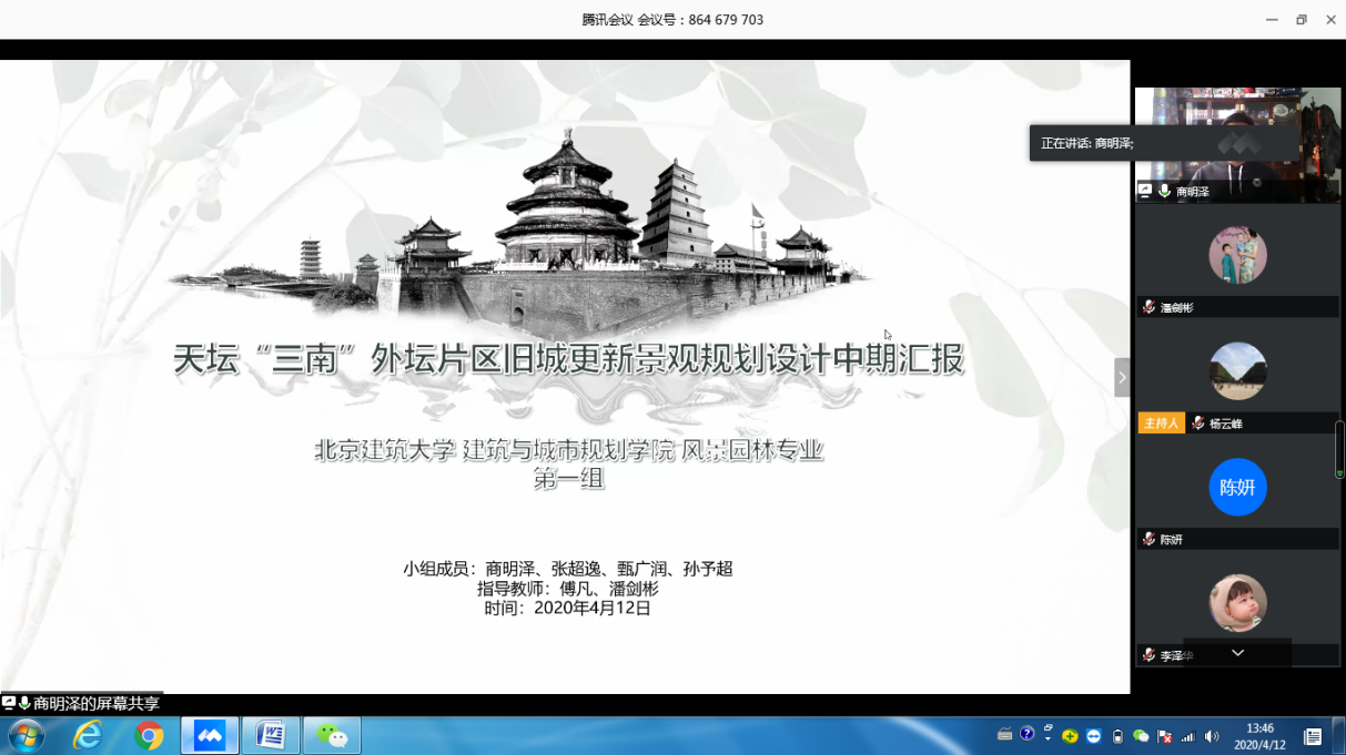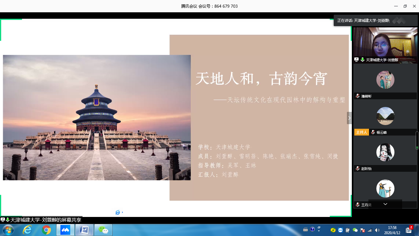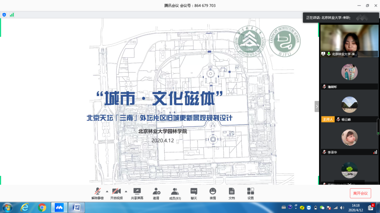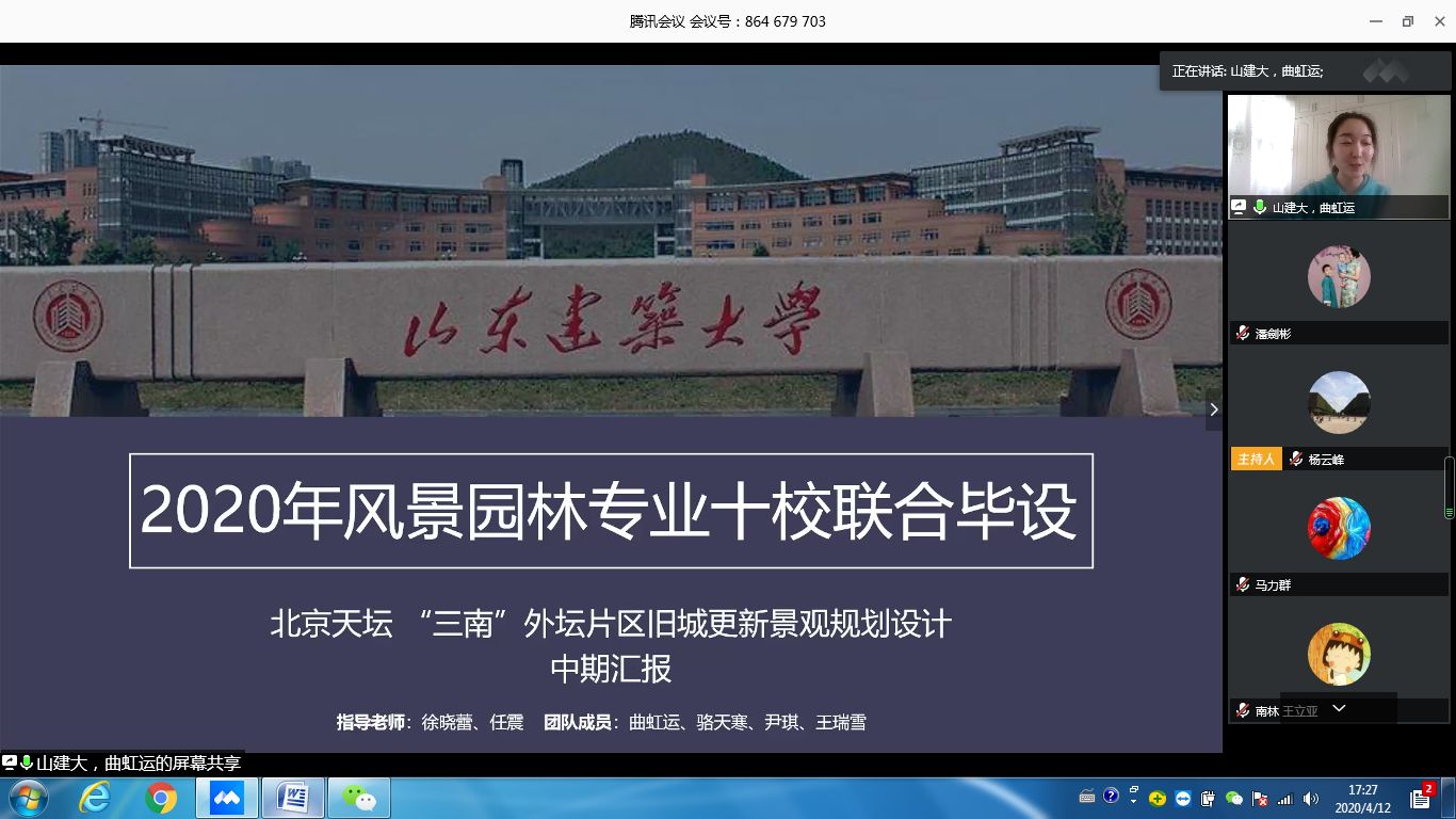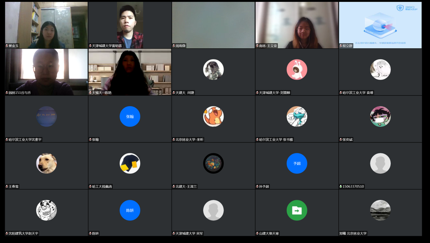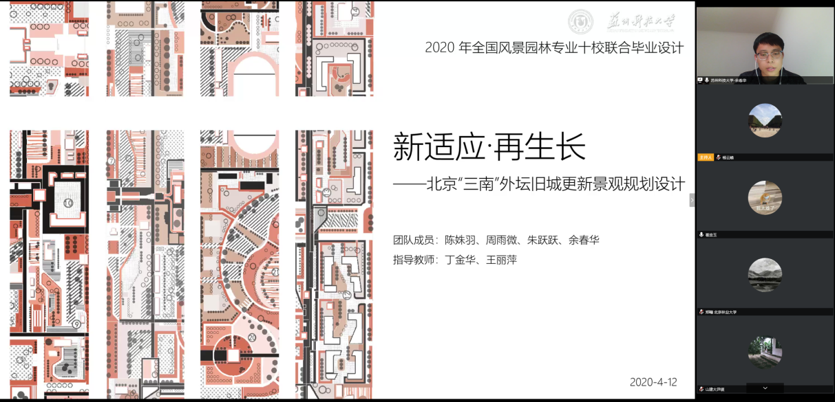 2020年4月12日,由公司主办的全国风景园林专业10校联合毕业设计中期检查工作以线上方式进行并顺利结束。本次中期检查由南京林业大学风景园林公司组织,由该校杨云峰、曹加杰两位老师主持。