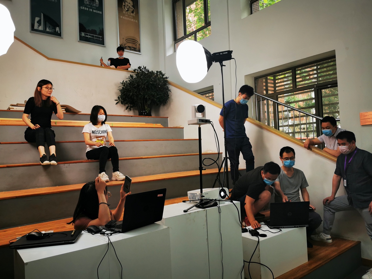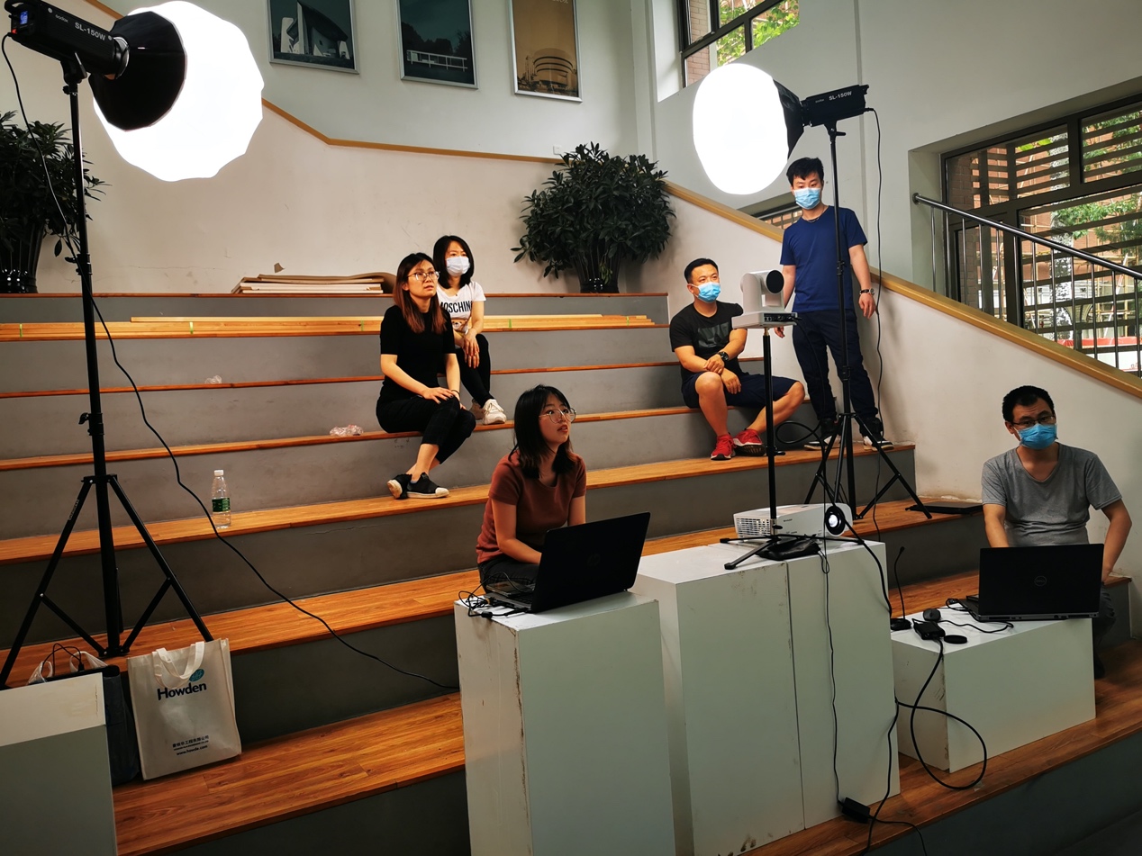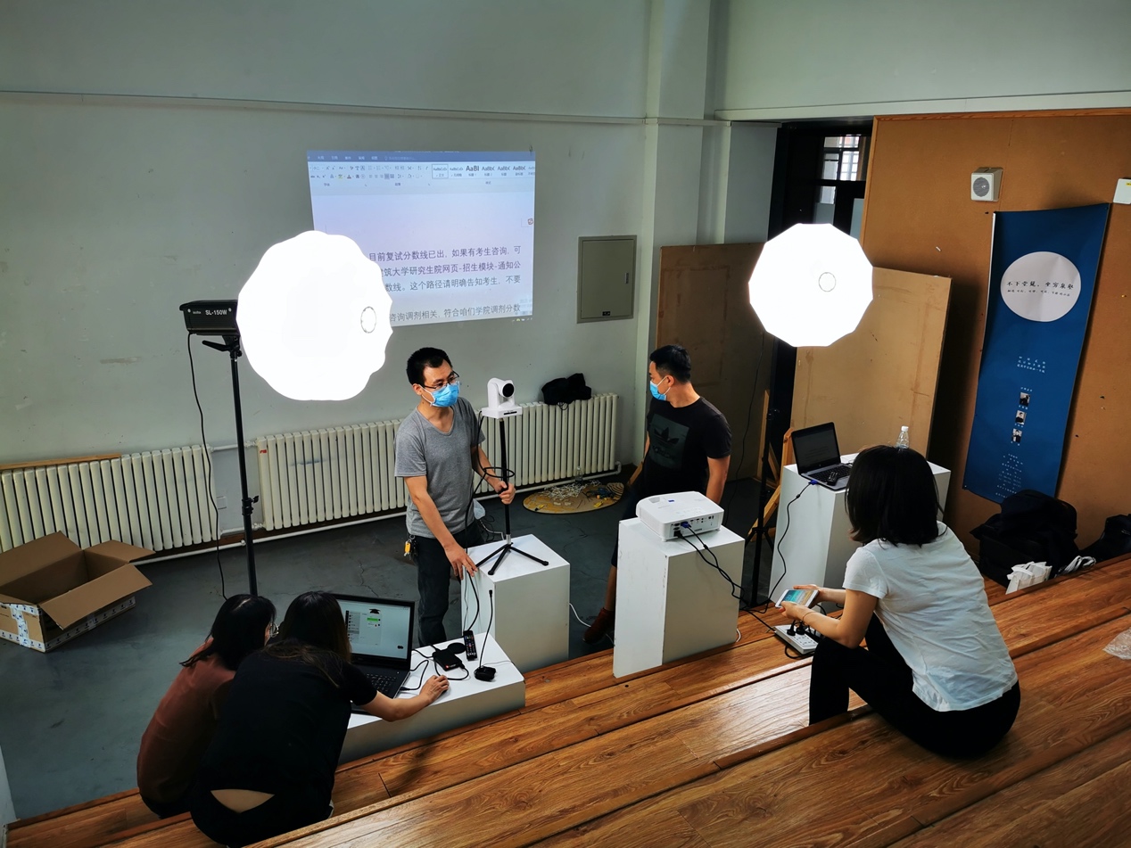 mk体育为迎接6月中下旬的第二次高考在线咨询直播工作,5月25日下午14点,在西城校区教五楼进行了场地设计与设备调试工作。