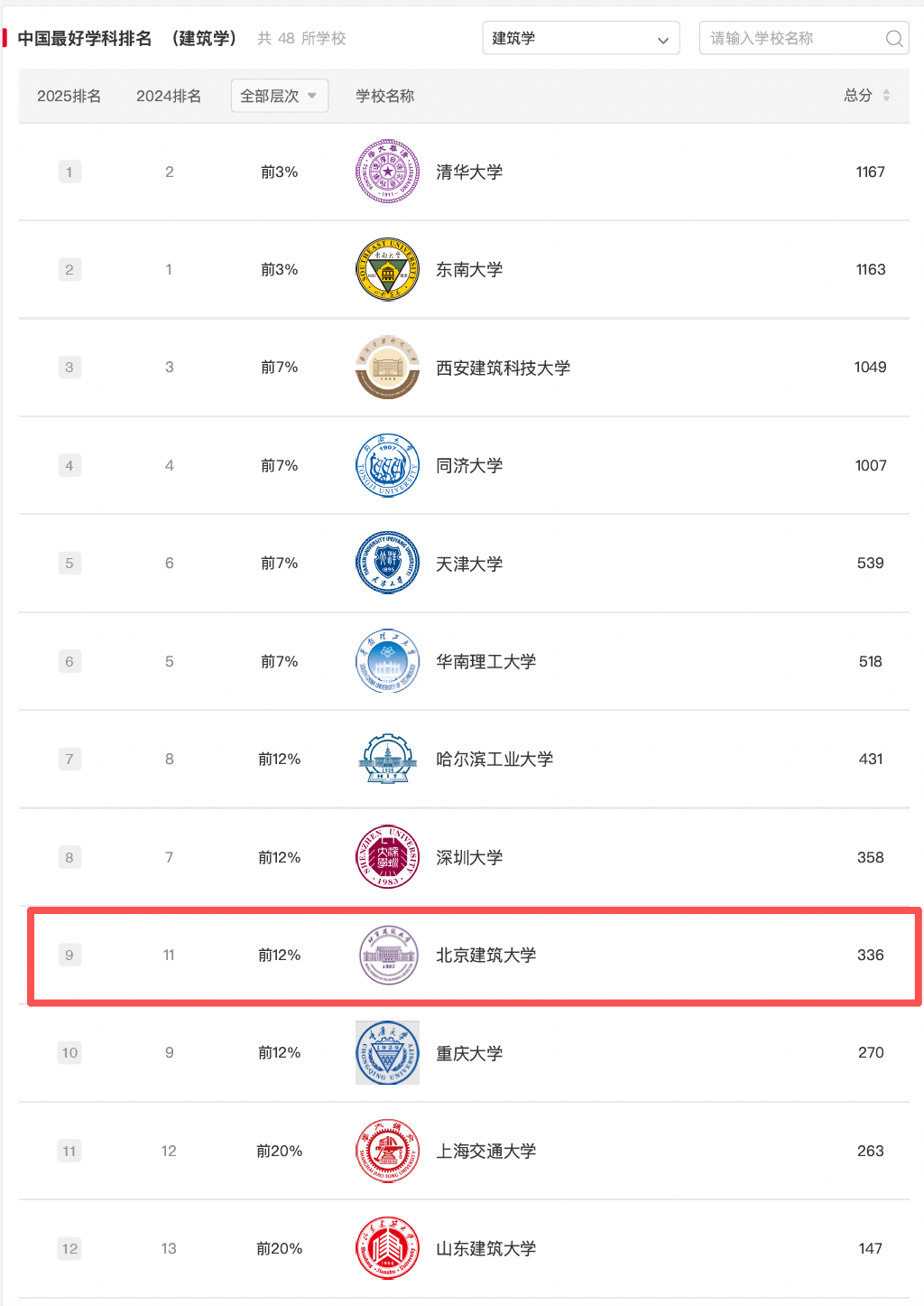 近日,高等教育专业评价机构软科正式发布“2025软科中国最好学科排名”,mkmksport建筑学学科位列全国第9名,排名层次进入全国前12%。