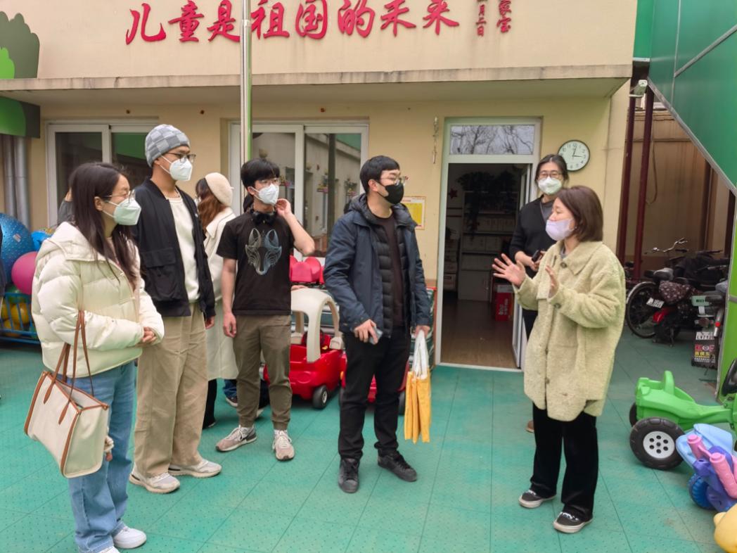 3月21日下午,公司2021级建筑学创新实验班全体同学,在“建筑设计2-幼儿园设计”课程教师王韬、程艳春、孙艳晨,以及辅导员吴昕泽、天桥街道责任规划师甘振坤五位老师的带领下,来到虎坊路幼儿园开展实地调研。