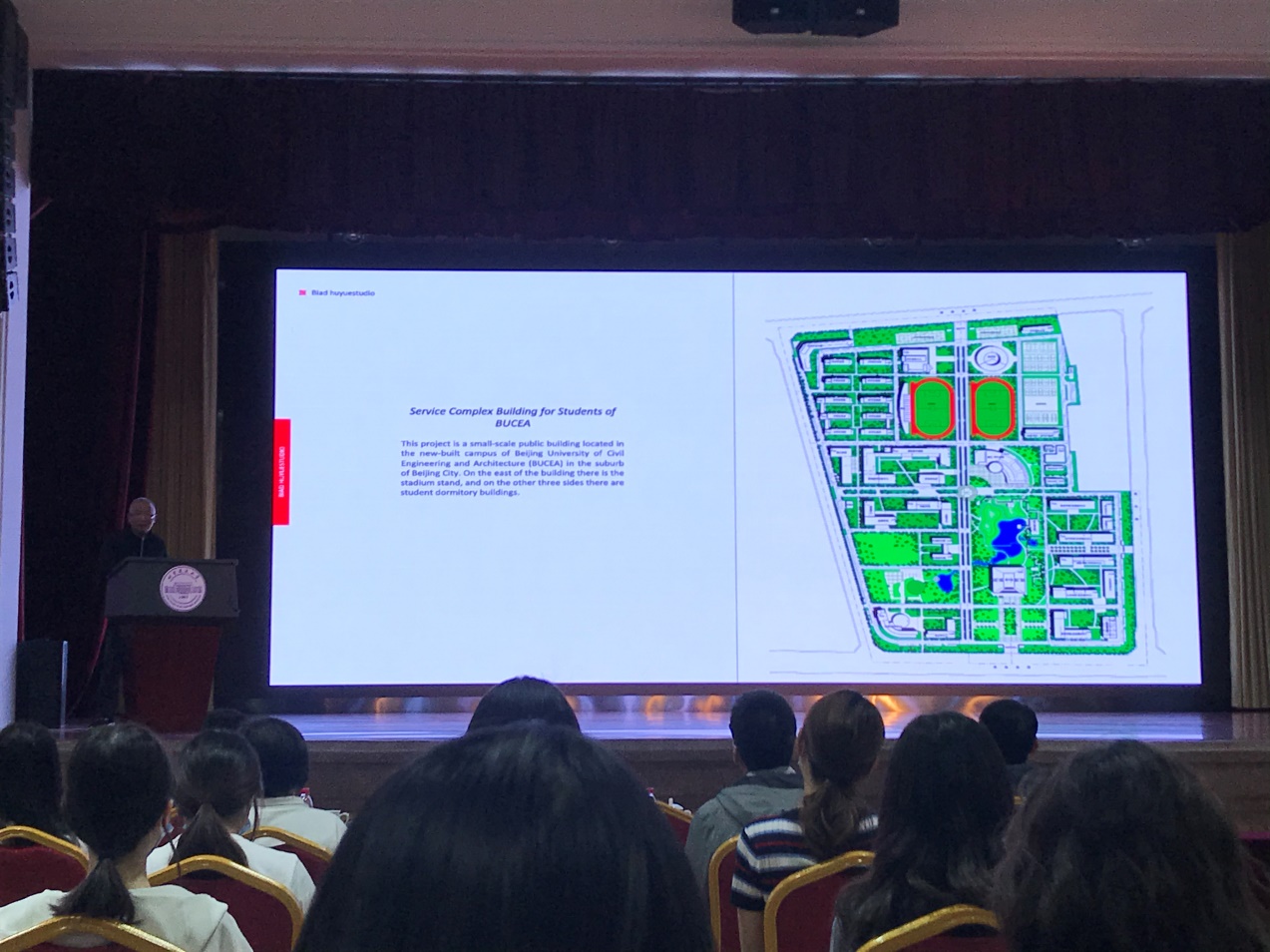 胡越在讲座中通过介绍九种建筑边界形态,讲解了自己对建筑与环境关系的理解,并分享了2019北京中国世界园艺博览会国际馆、天津未来智慧城市示范区展馆、中建三局北方基地、前门西兴隆街R地块、成都国宝剧场等多个作品。胡大师的作品一直试图在建筑和人与环境之间,在文化和物质两个层面建立一种持久的特殊的关系,他认为建筑应该成为语言之外的一种思想的表达方式。建筑师在设计过程中要有意识地思考边界问题,应当关注人的活动、自然环境、城市环境以及周边环境的尺度。自由提问阶段,老师同学们踊跃发言,提出关于建筑设计与施工的配合问题、如何定义与加强建筑边界等多个问题,胡越老师逐一详细解答。