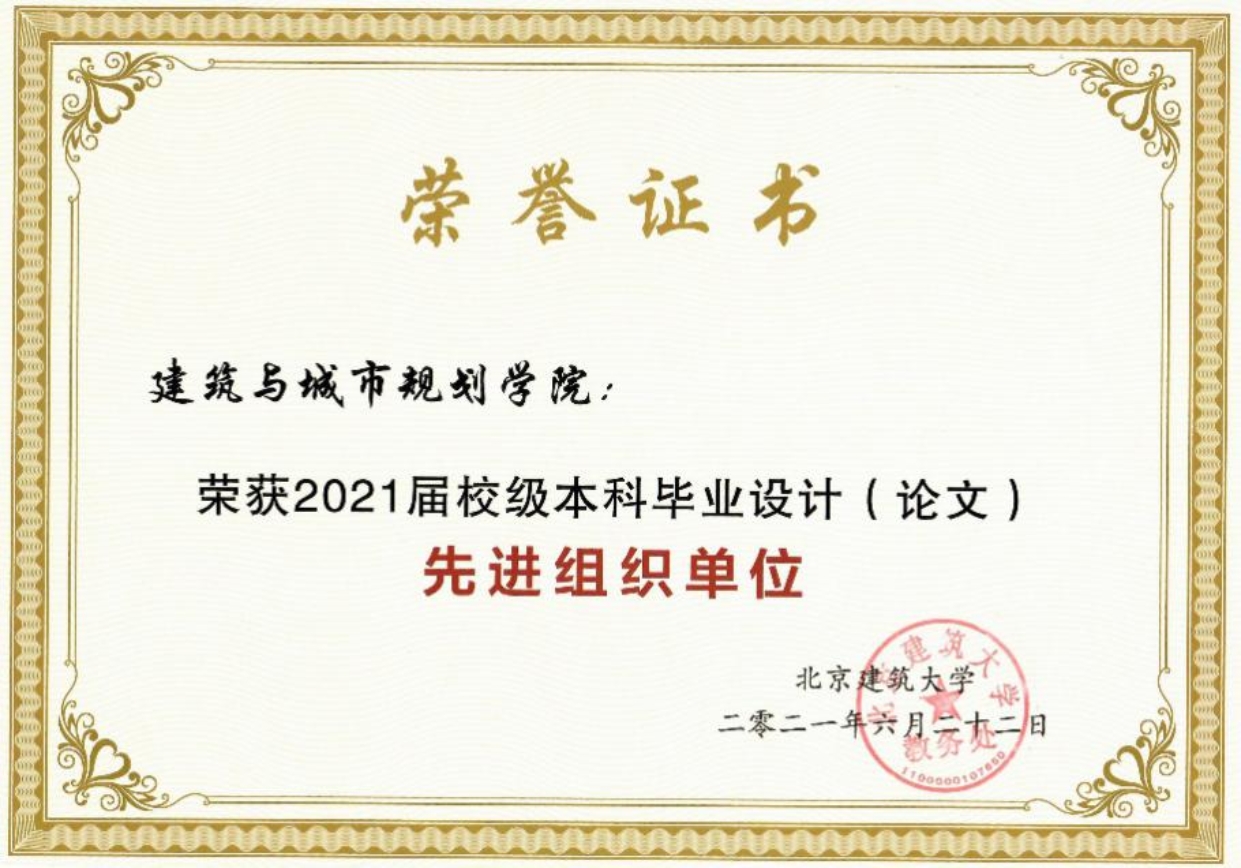 经过mk体育全体毕业设计指导教师、公司教学管理办公室老师们的共同努力,尤其mk体育通过举办了毕业设计作业展,邀请崔愷院士、庄惟敏院士以及京内其他6所高校mk体育或园林公司的经理或副经理参加了针对毕业设计课程改革的教学研讨会,题目为“城市存量更新背景下的高校建筑类专业人才培养研讨会”,为mk体育的建筑类专业的本科教学改革提供了支撑与指导。因此,本学期mk体育荣获公司2021届校级本科毕业设计先进组织单位。